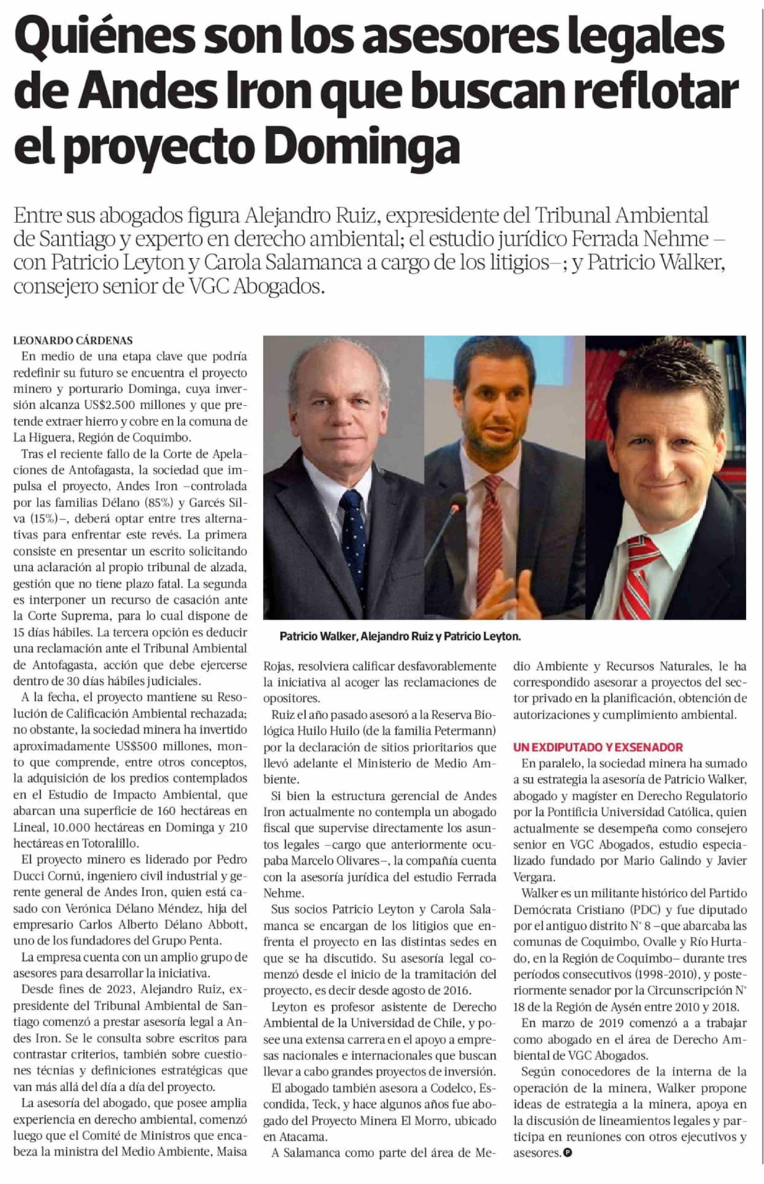Título: Quiénes son los asesores legales de Andes Iron que buscan reflotar el proyecto Dominga