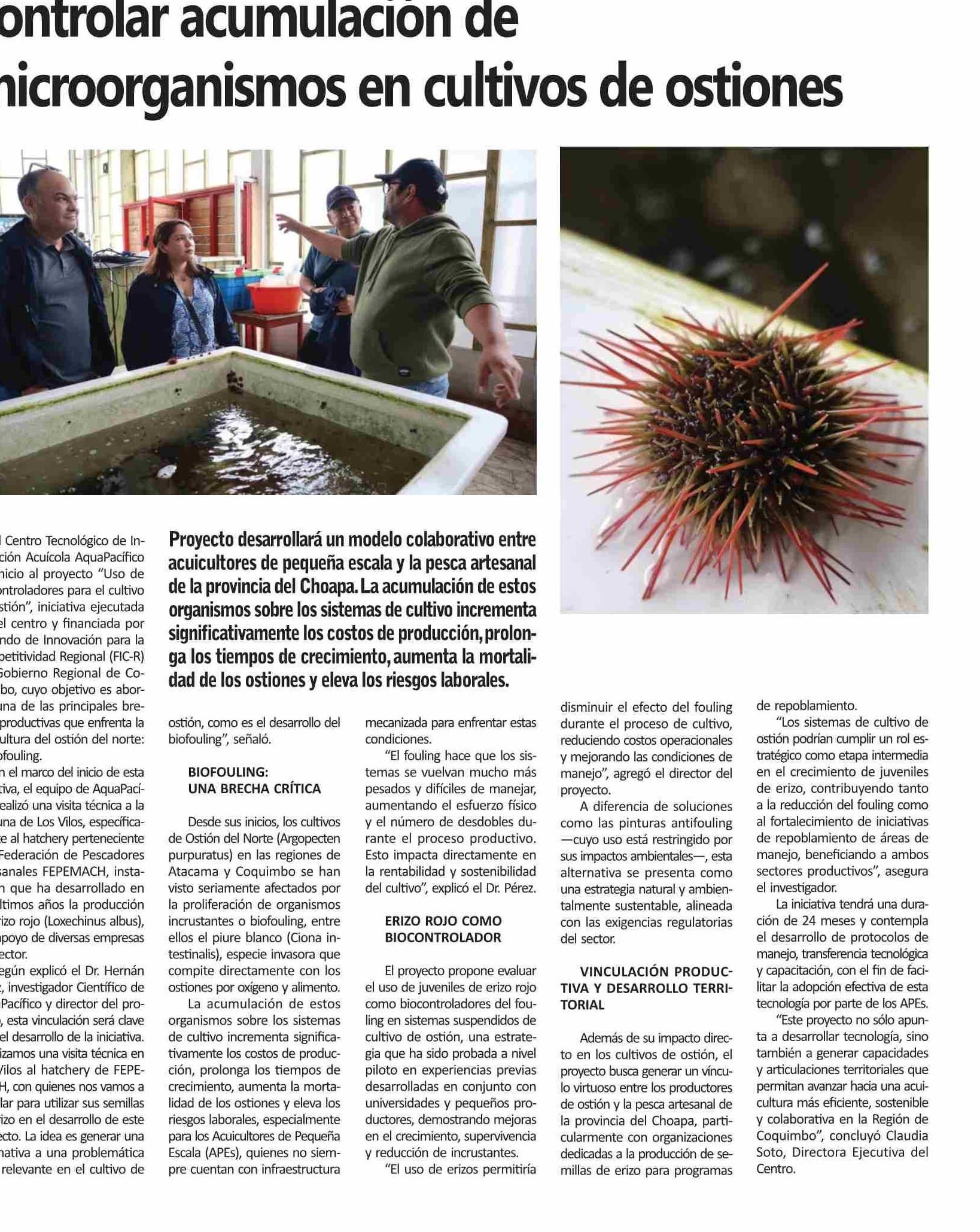 Apuestan por el erizo rojo para controlar acumulación de microorganismos en cultivos de ostiones