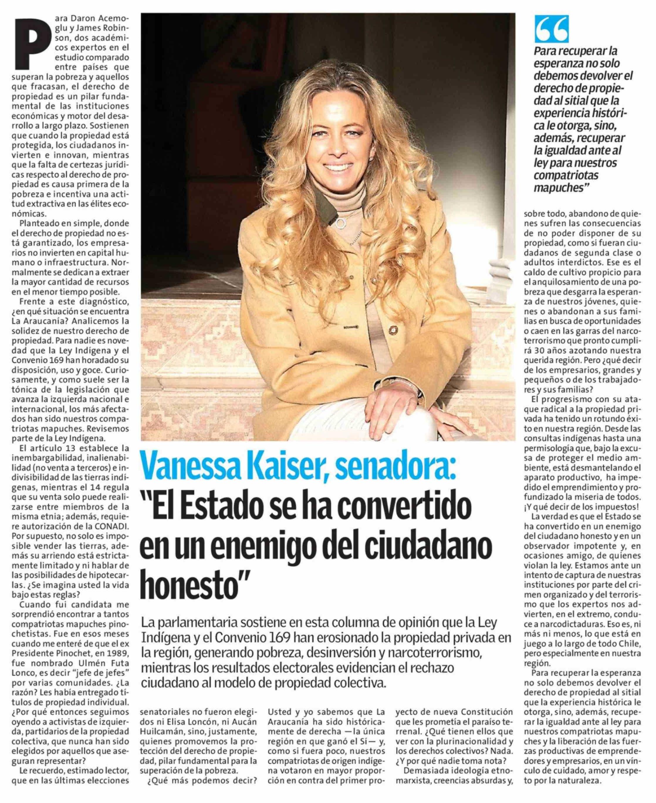 Vanessa Kaiser, senadora: "El Estado se ha convertido en un enemigo del ciudadano honesto"