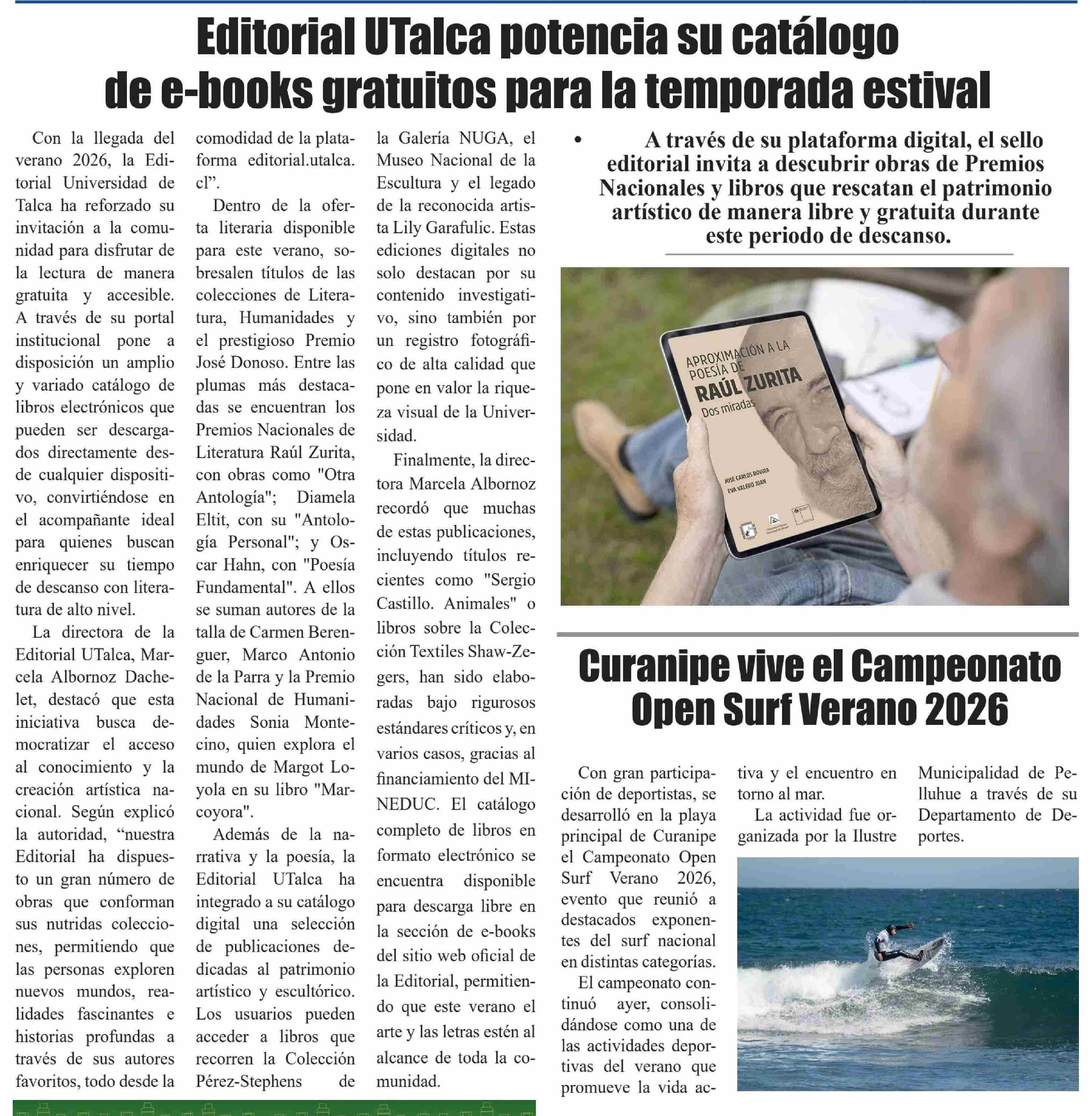 Editorial UTalca potencia su catálogo de e-books gratuitos para la temporada estival