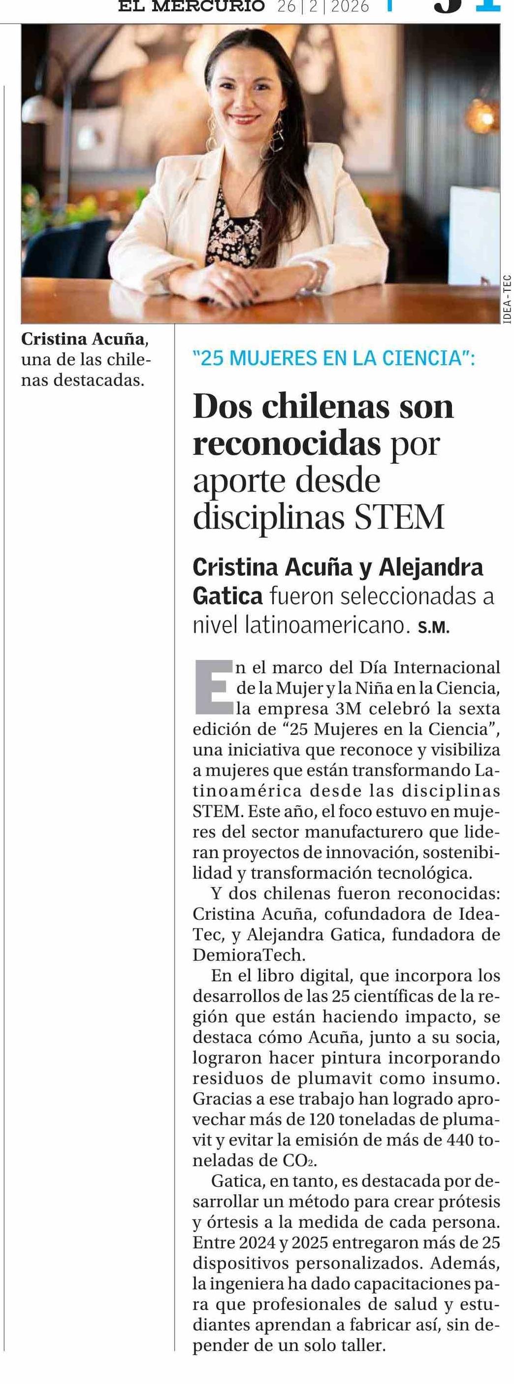 Dos chilenas son reconocidas por aporte desde disciplinas STEM