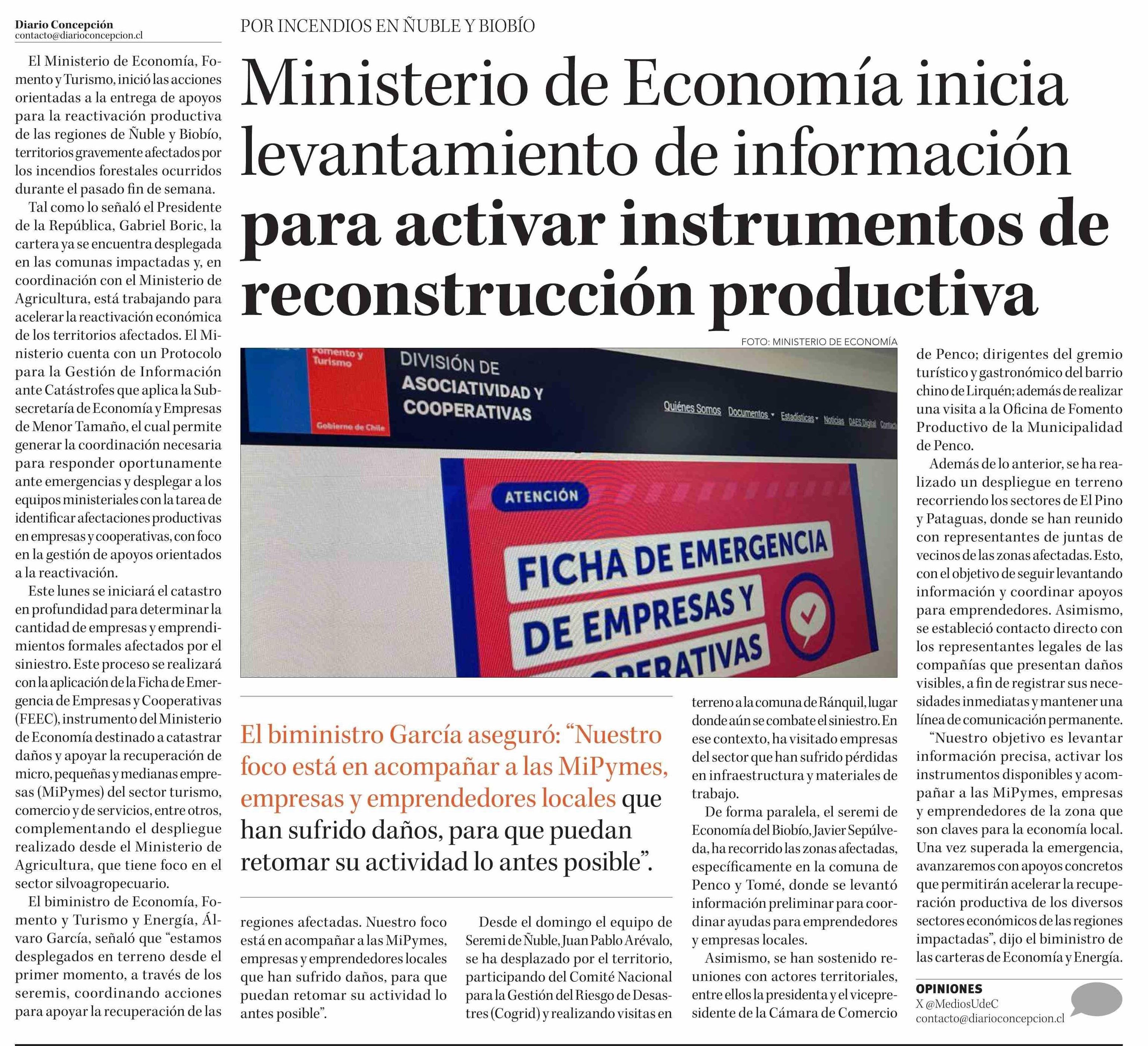 Ministerio de Economía inicia levantamiento de información para activar instrumentos de reconstrucción productiva