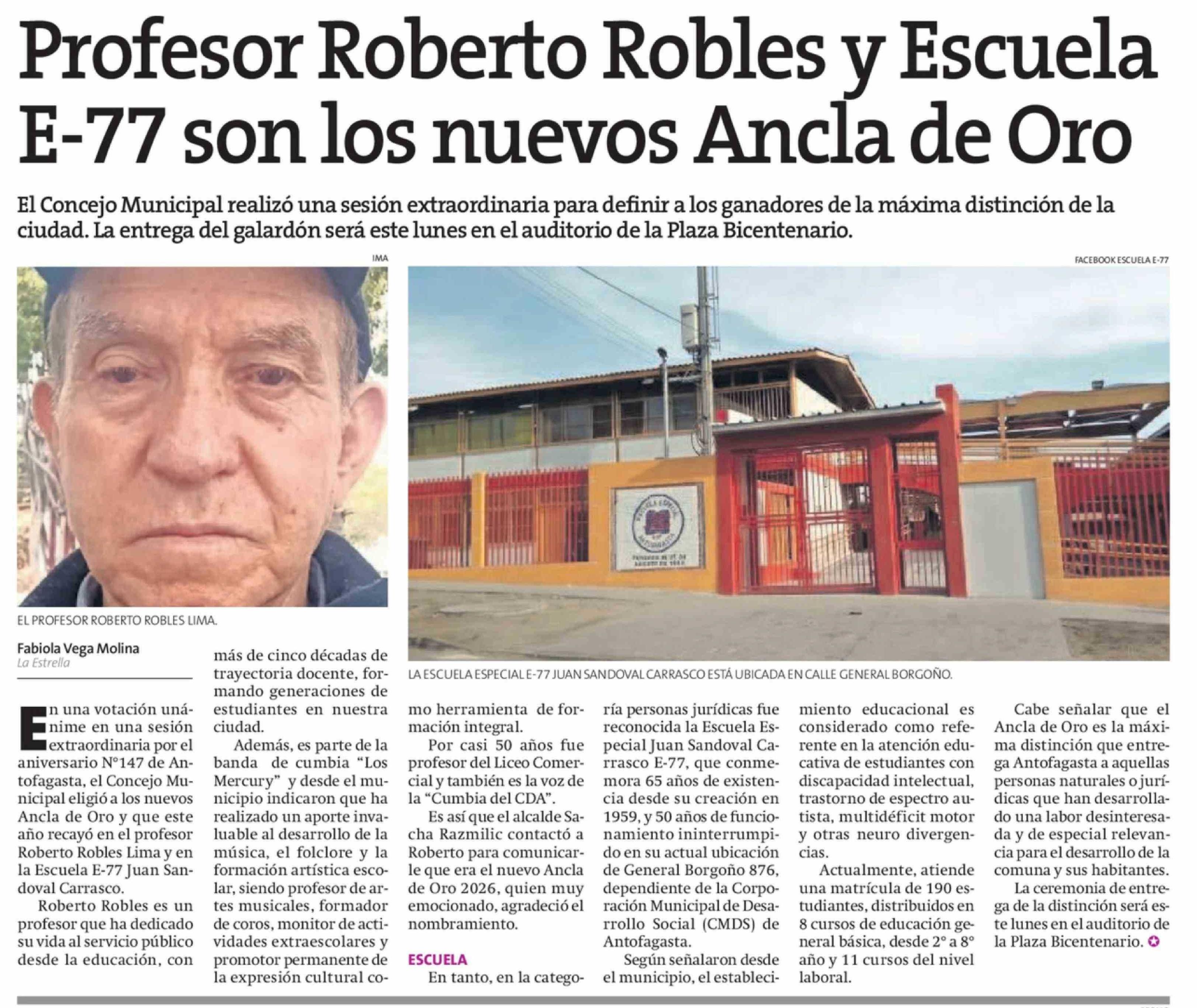 Profesor Roberto Robles y Escuela E-77 son los nuevos Ancla de Oro