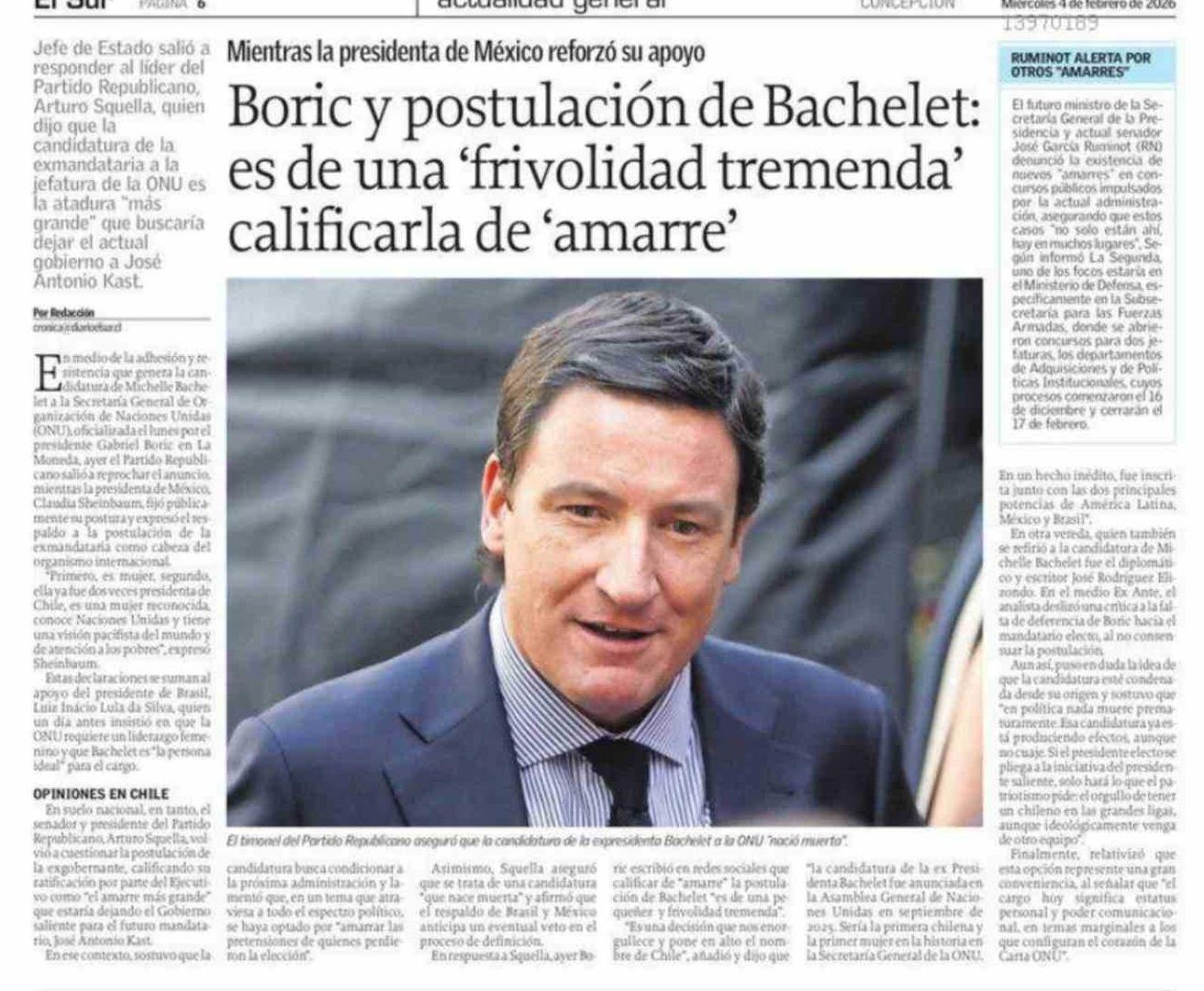 Boric y postulación de Bachelet: es de una 'frivolidad tremenda' calificarla de 'amarre'