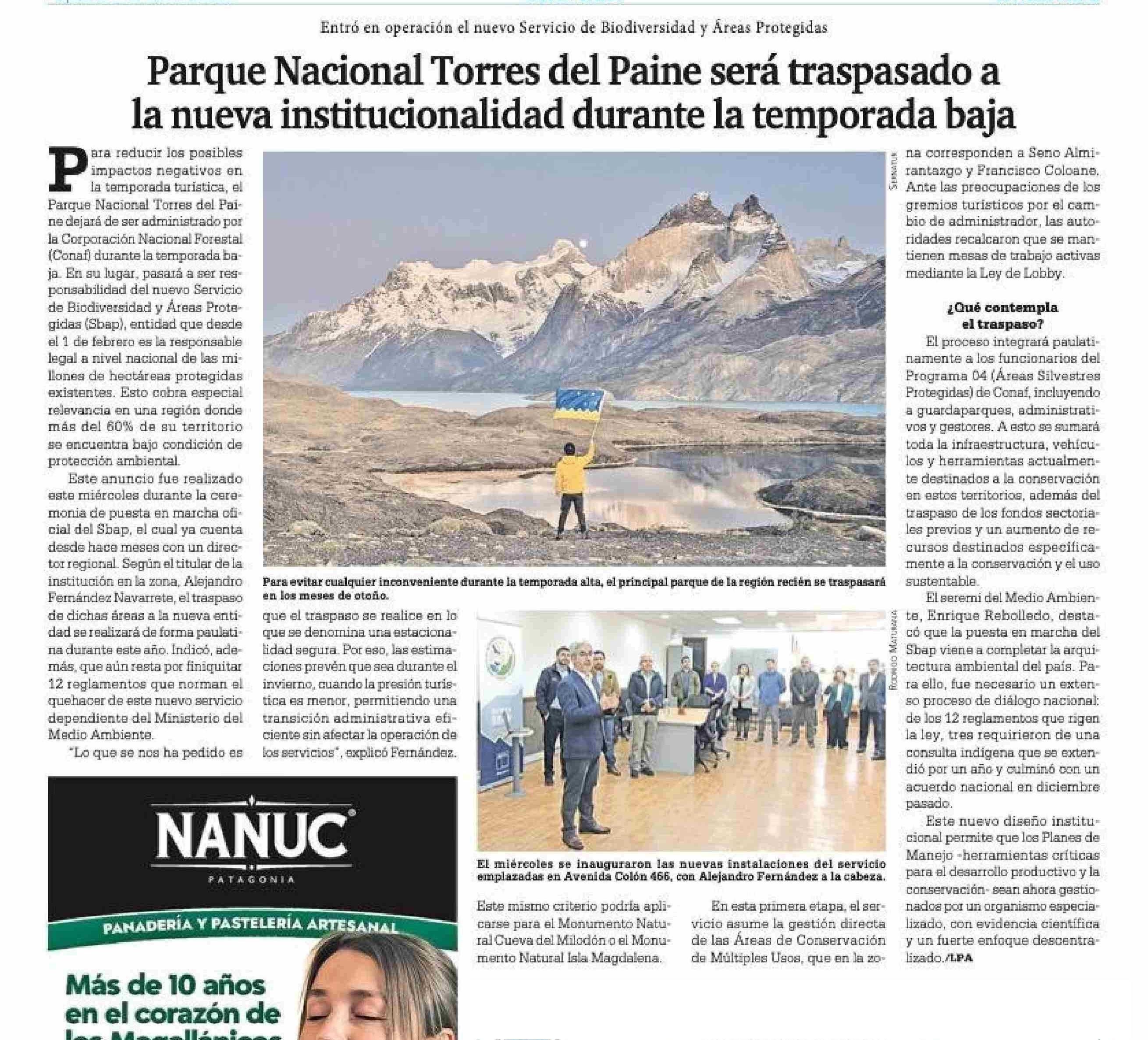 Parque Nacional Torres del Paine será traspasado a la nueva institucionalidad durante la temporada baja