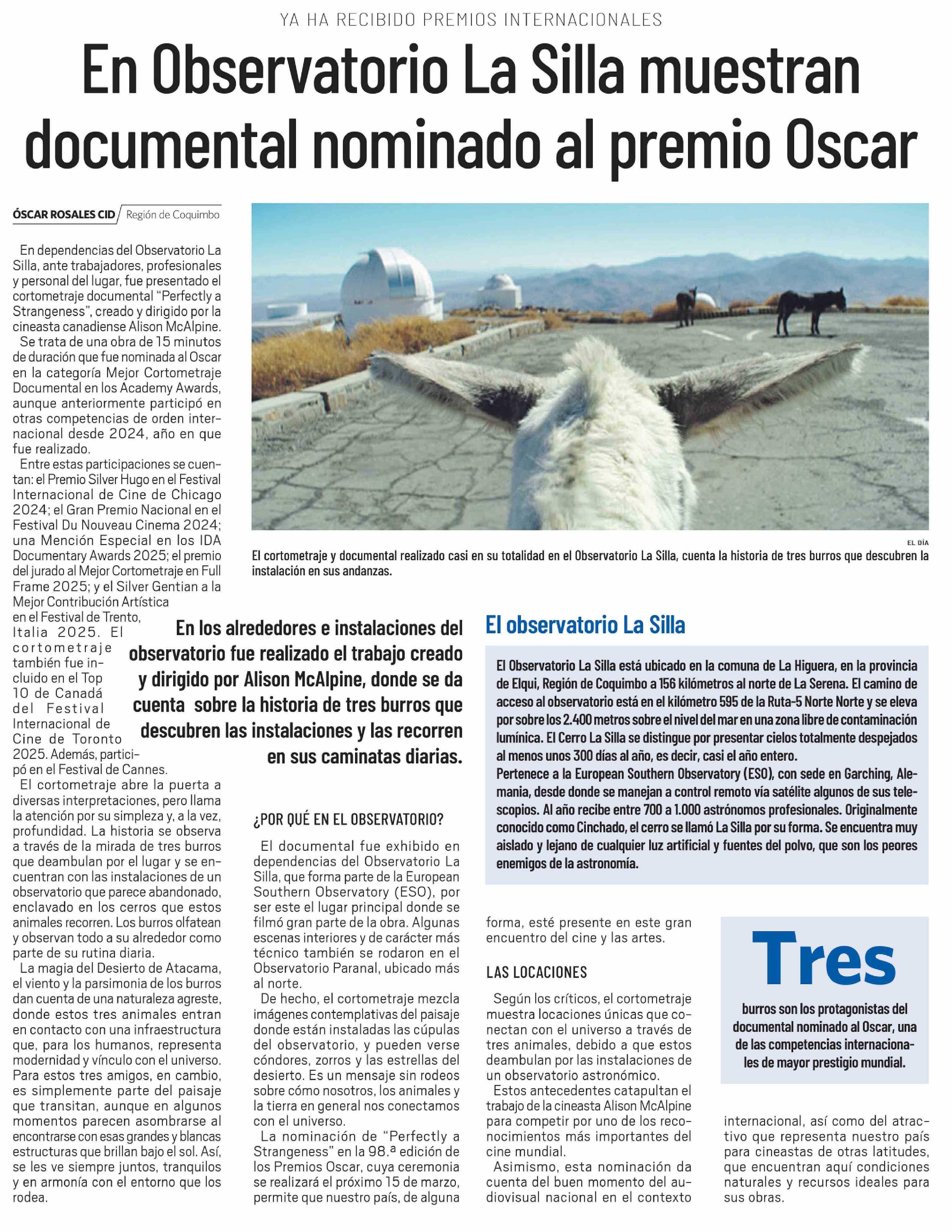 En Observatorio La Silla muestran documental nominado al premio Oscar