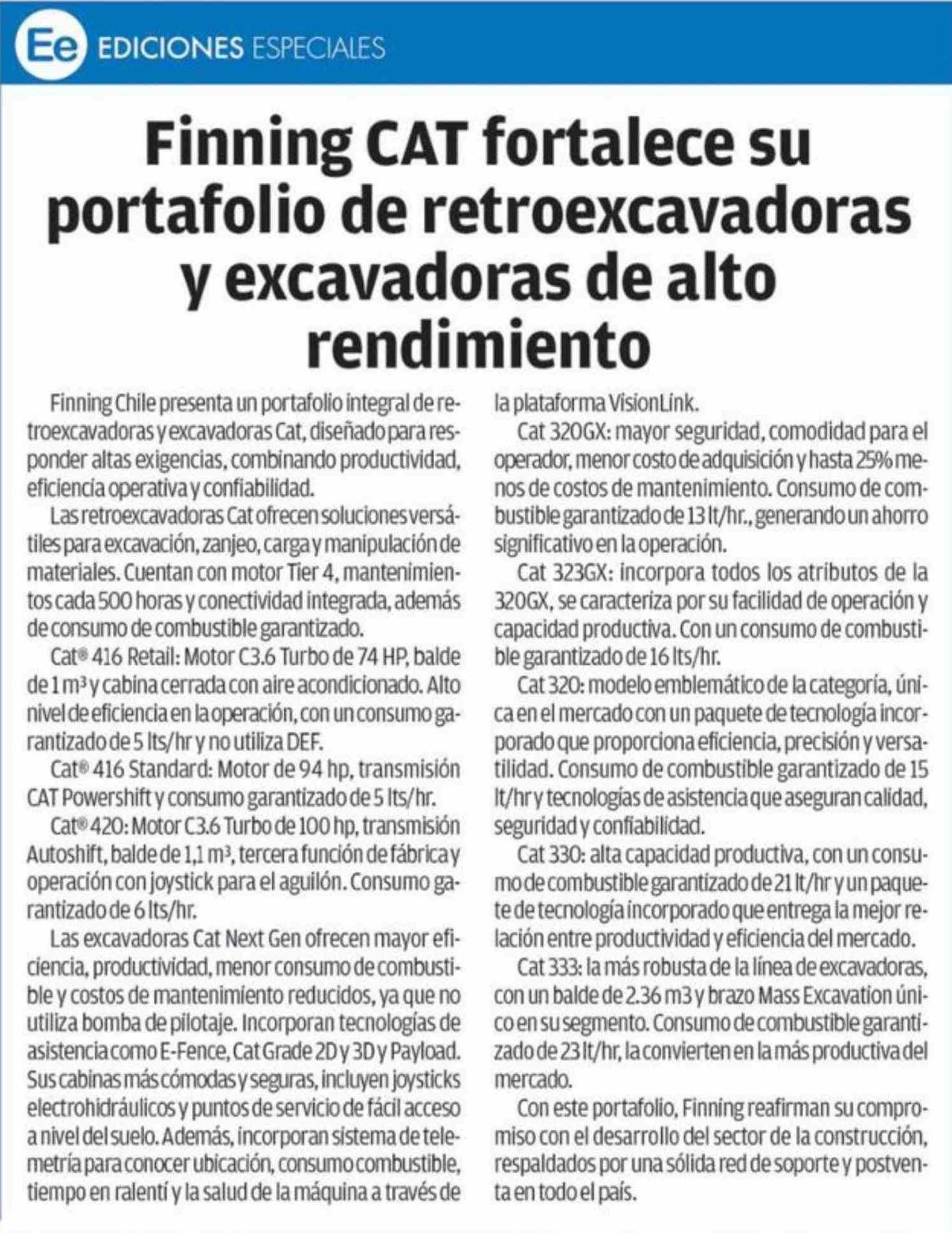 Finning CAT fortalece su portafolio de retroexcavadoras y excavadoras de alto rendimiento
