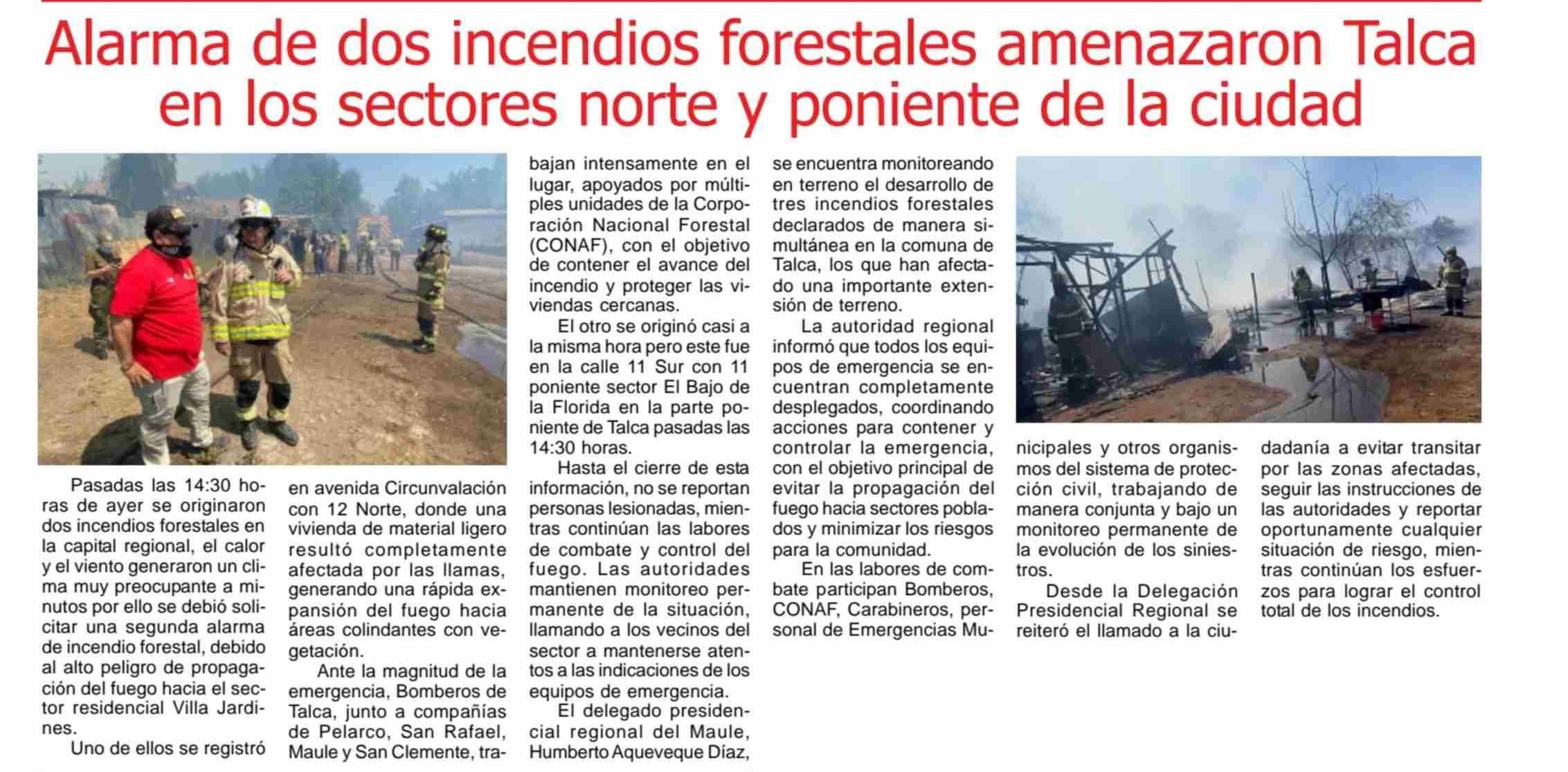 Alarma de dos incendios forestales amenazaron Talca en los sectores norte y poniente de la ciudad