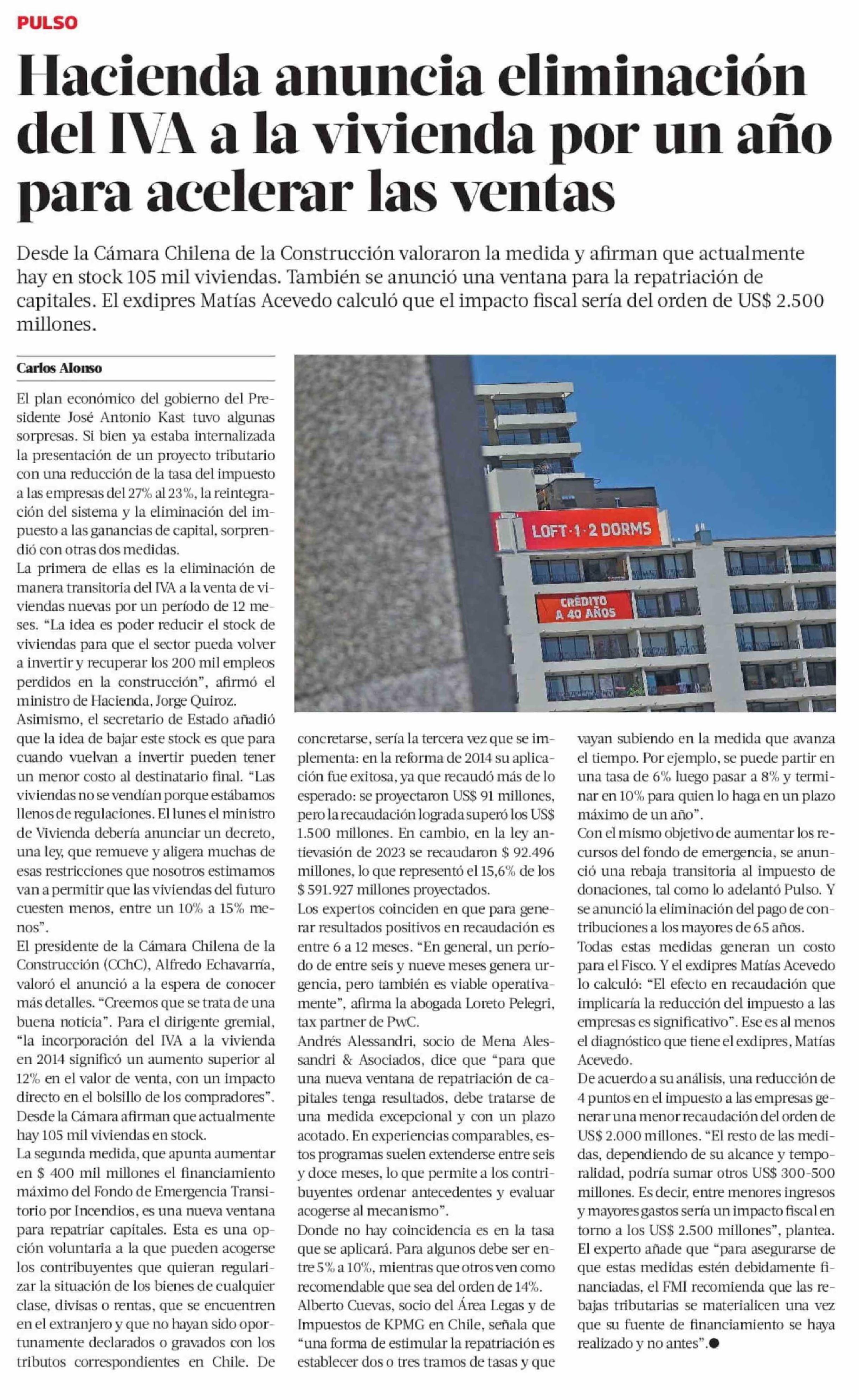 Hacienda anuncia eliminación del IVA a la vivienda por un año para acelerar las ventas