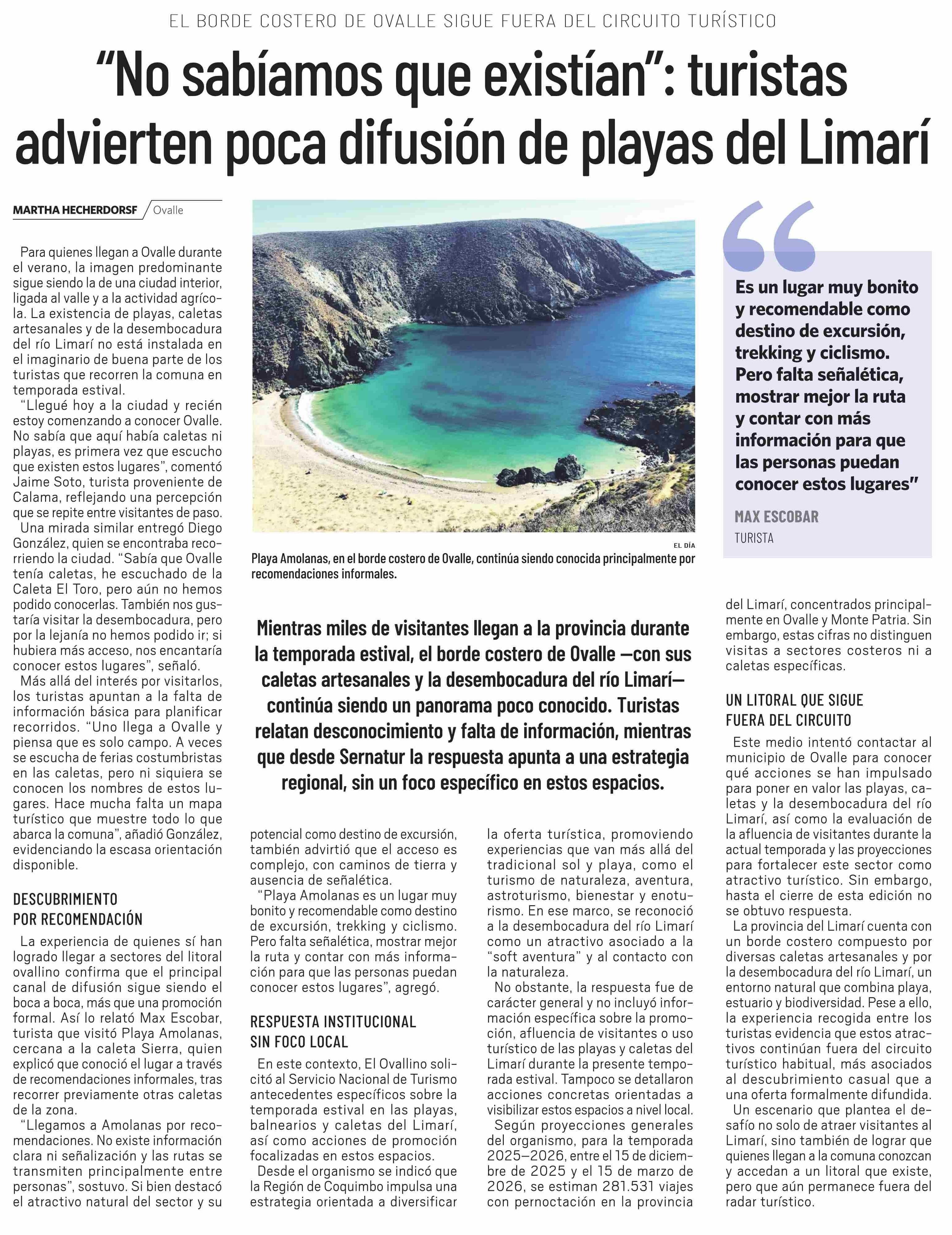 "No sabíamos que existían": turistas advierten poca difusión de playas del Limarí