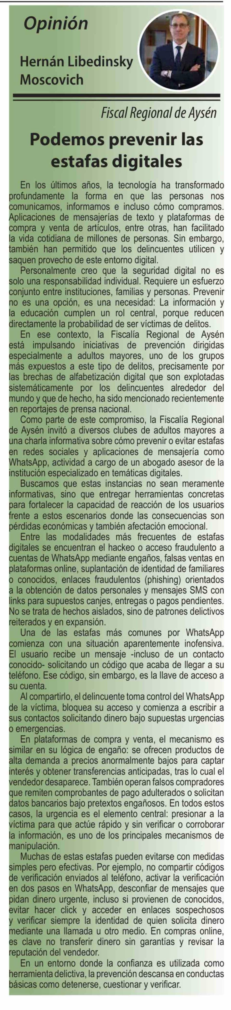 Columnas de Opinión: Podemos prevenir las estafas digitales