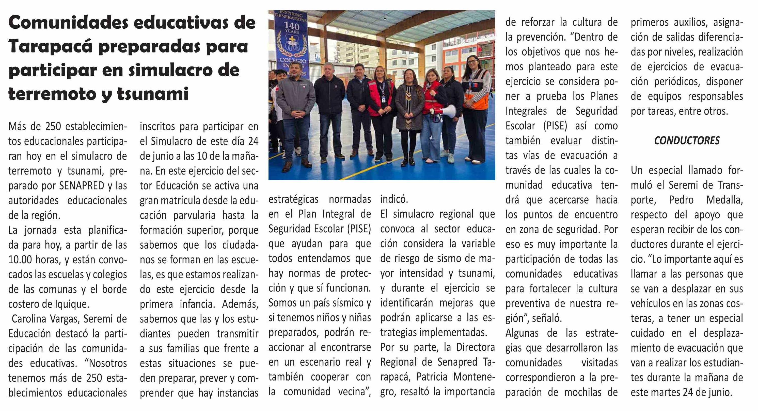 Comunidades educativas de Tarapacá preparadas para participar en simulacro de terremoto y tsunami