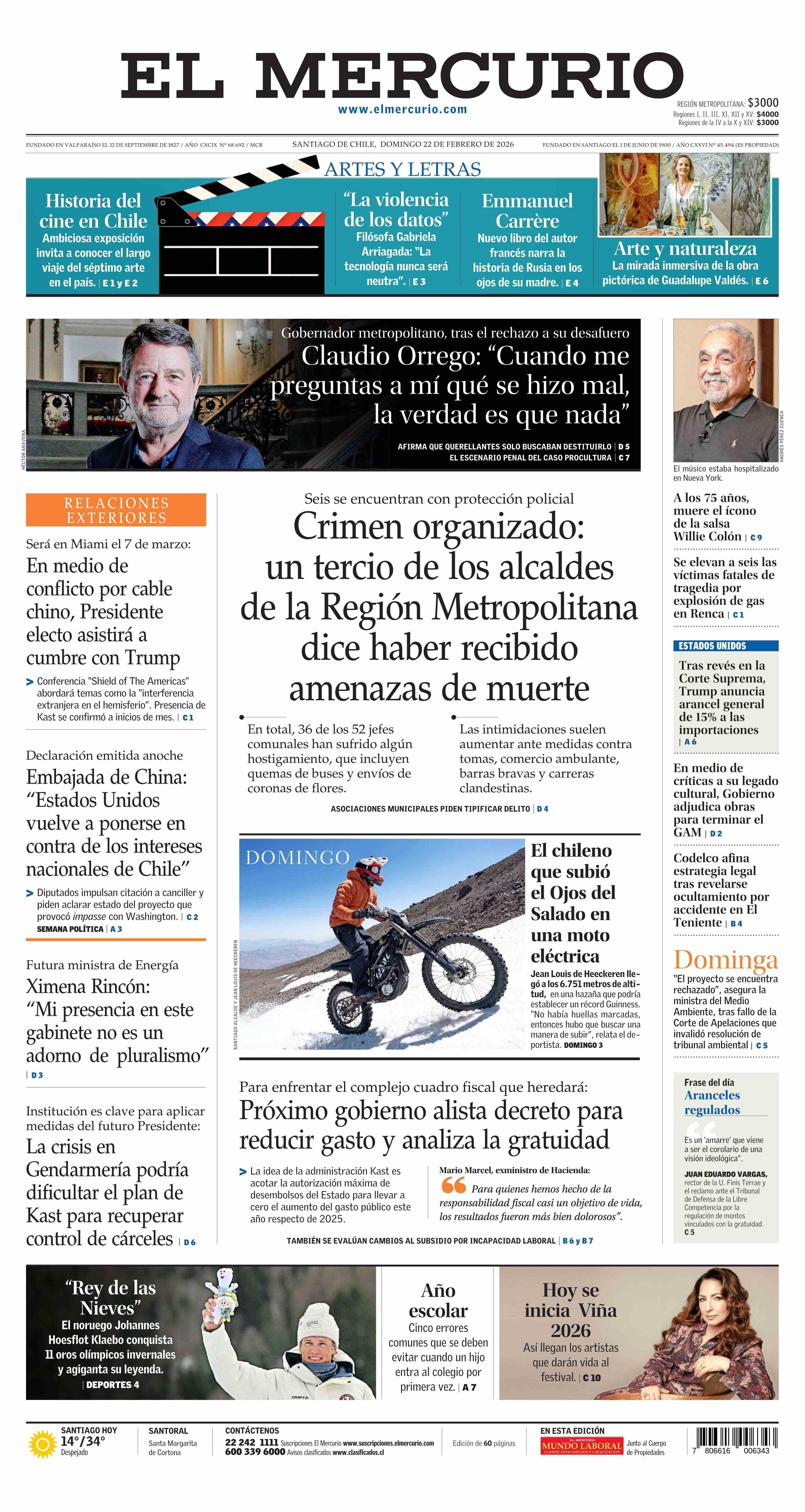 Fecha: 22-02-2026 Sector: Portada Región: Región Metropolitana de Santiago