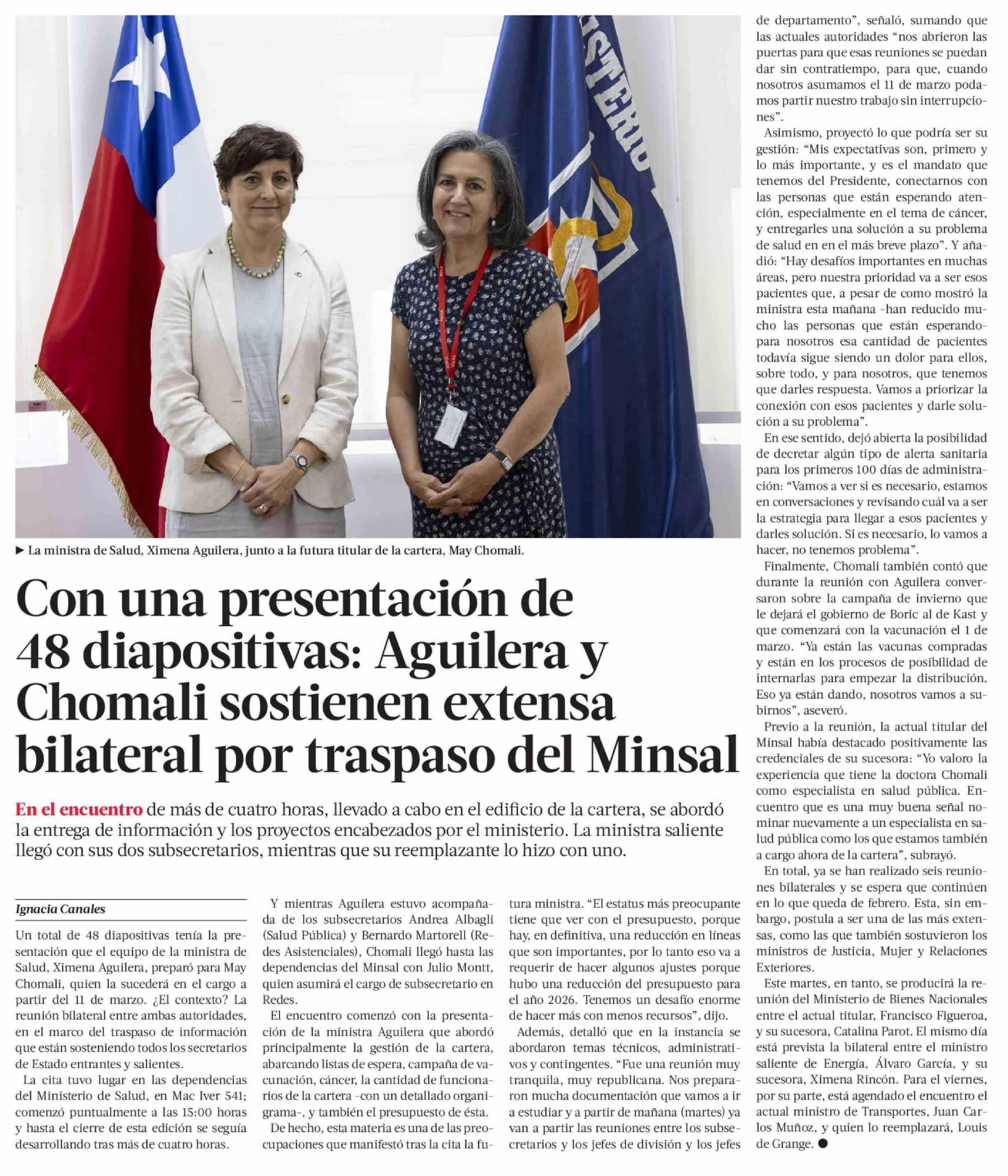 Con una presentación de 48 diapositivas: Aguilera y Chomali sostienen extensa bilateral por traspaso del Minsal