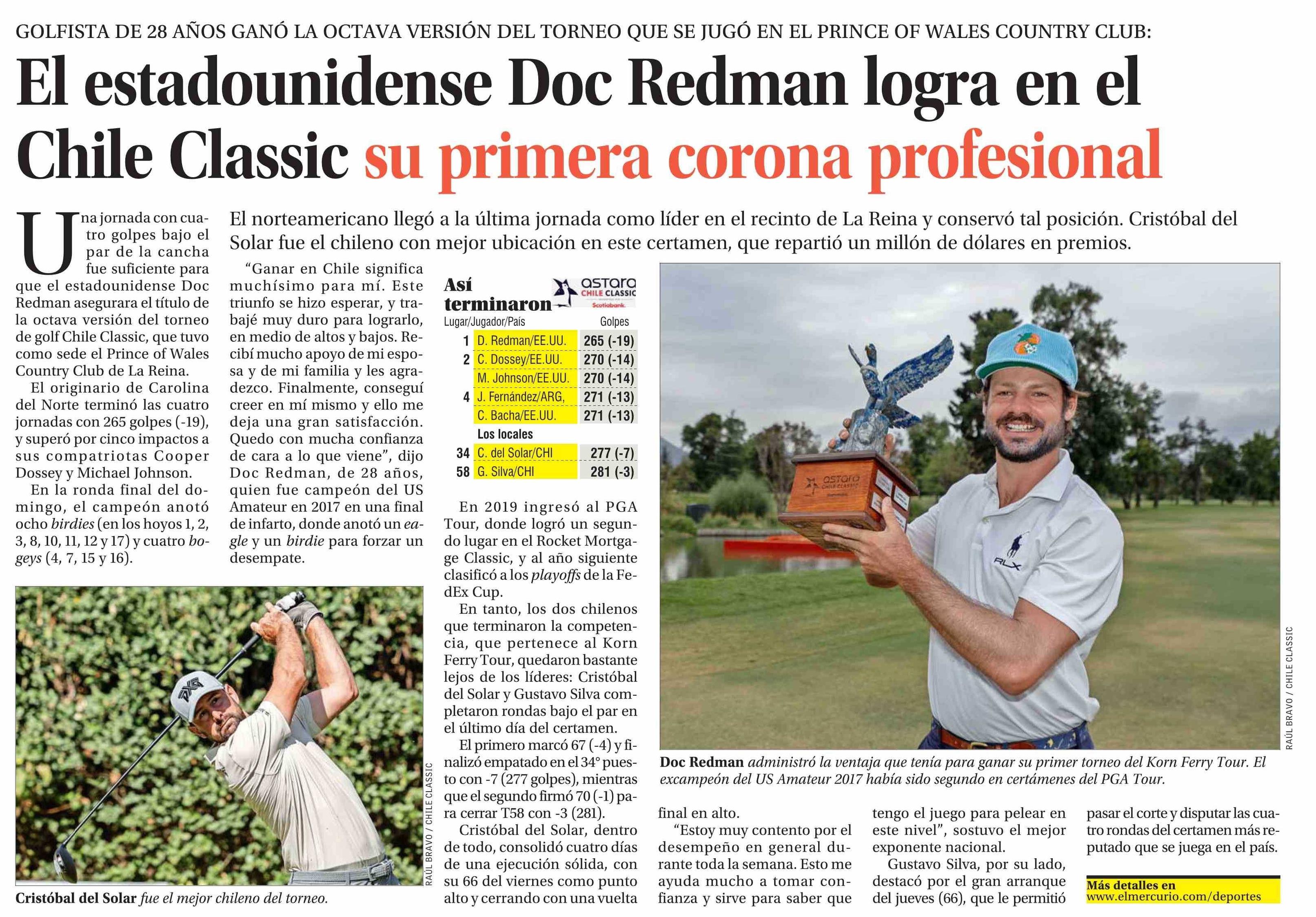 El estadounidense Doc Redman logra en el Chile Classic su primera corona profesional