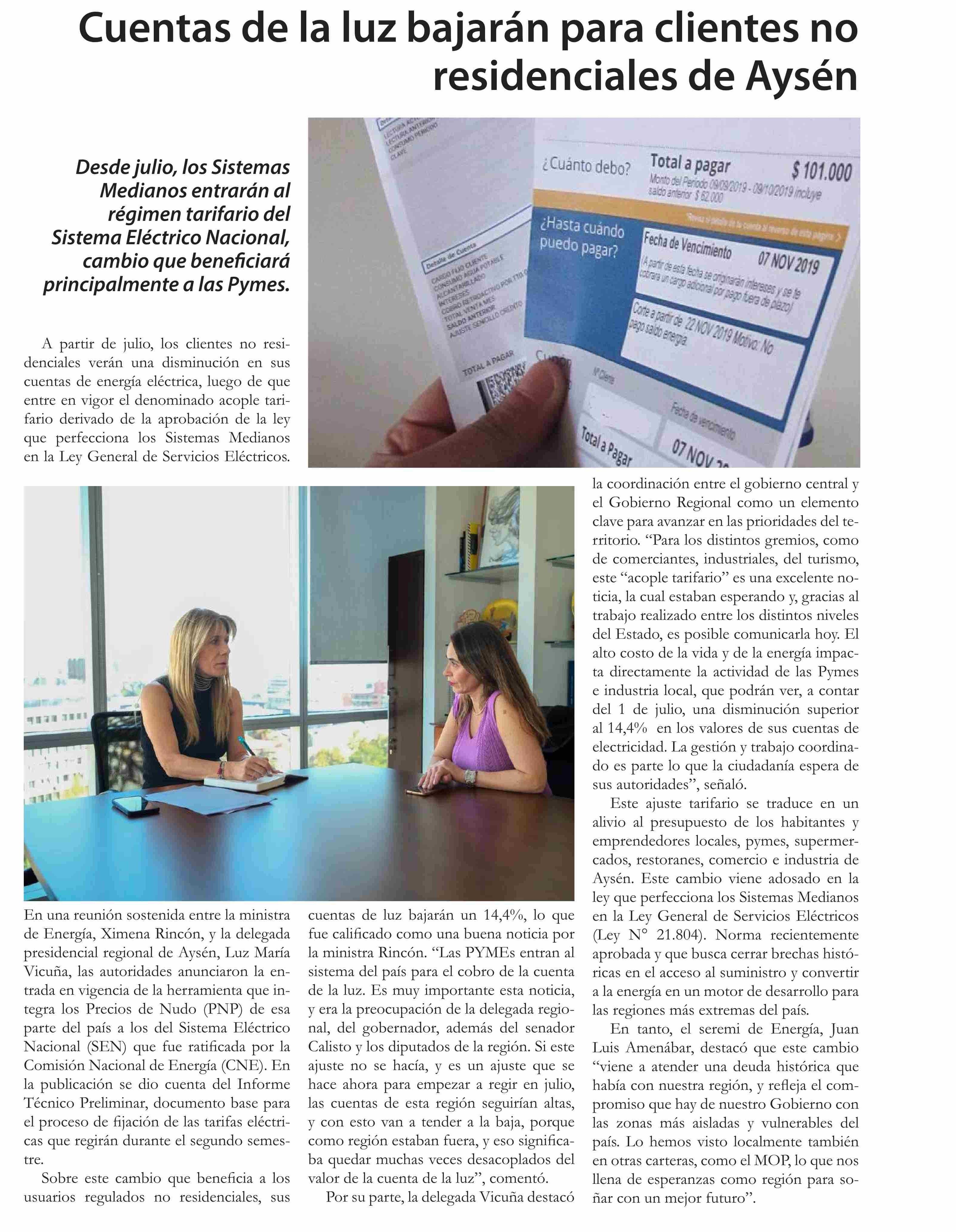 Cuentas de la luz bajarán para clientes no residenciales de Aysén