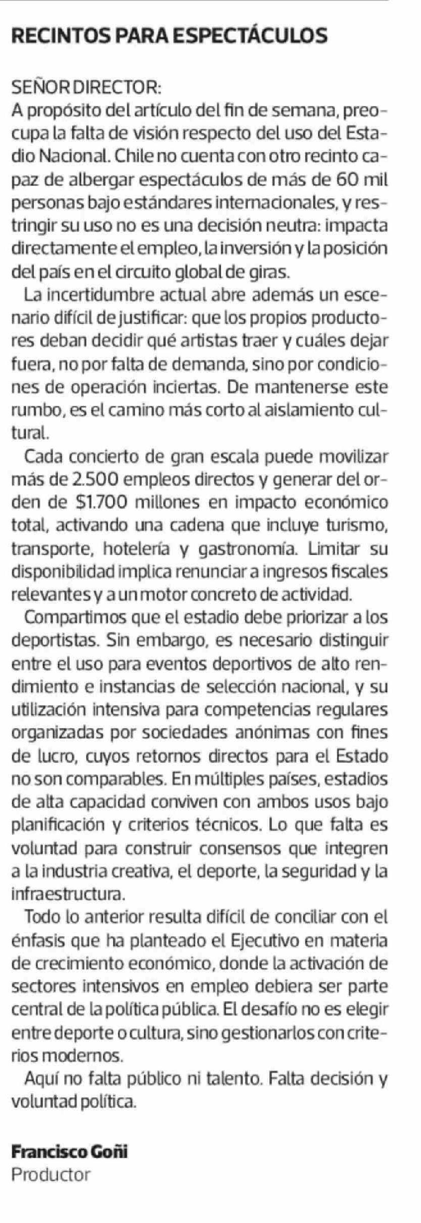 CARTAS: RECINTOS PARA ESPECTÁCULOS