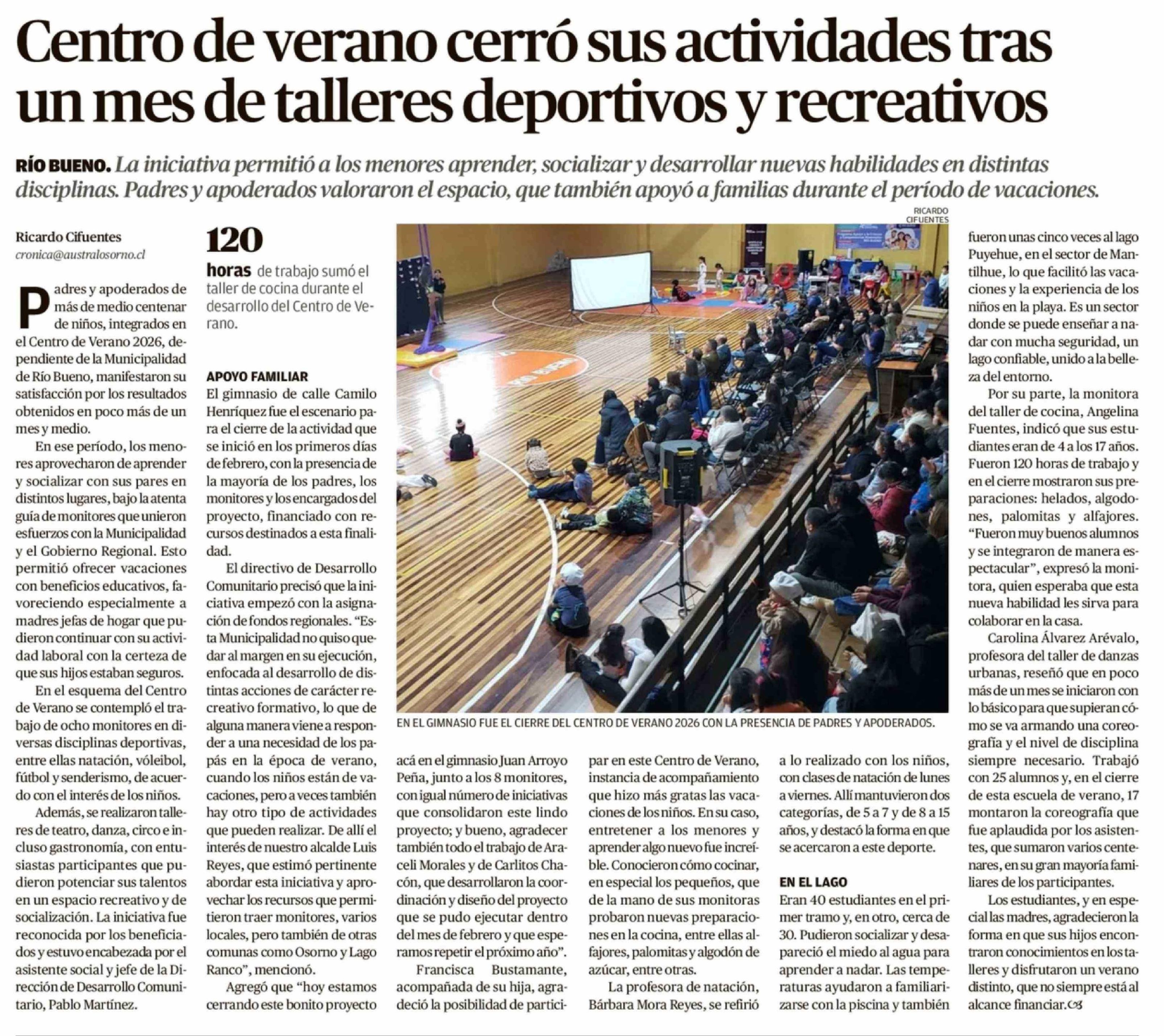 Centro de verano cerró sus actividades tras un mes de talleres deportivos y recreativos