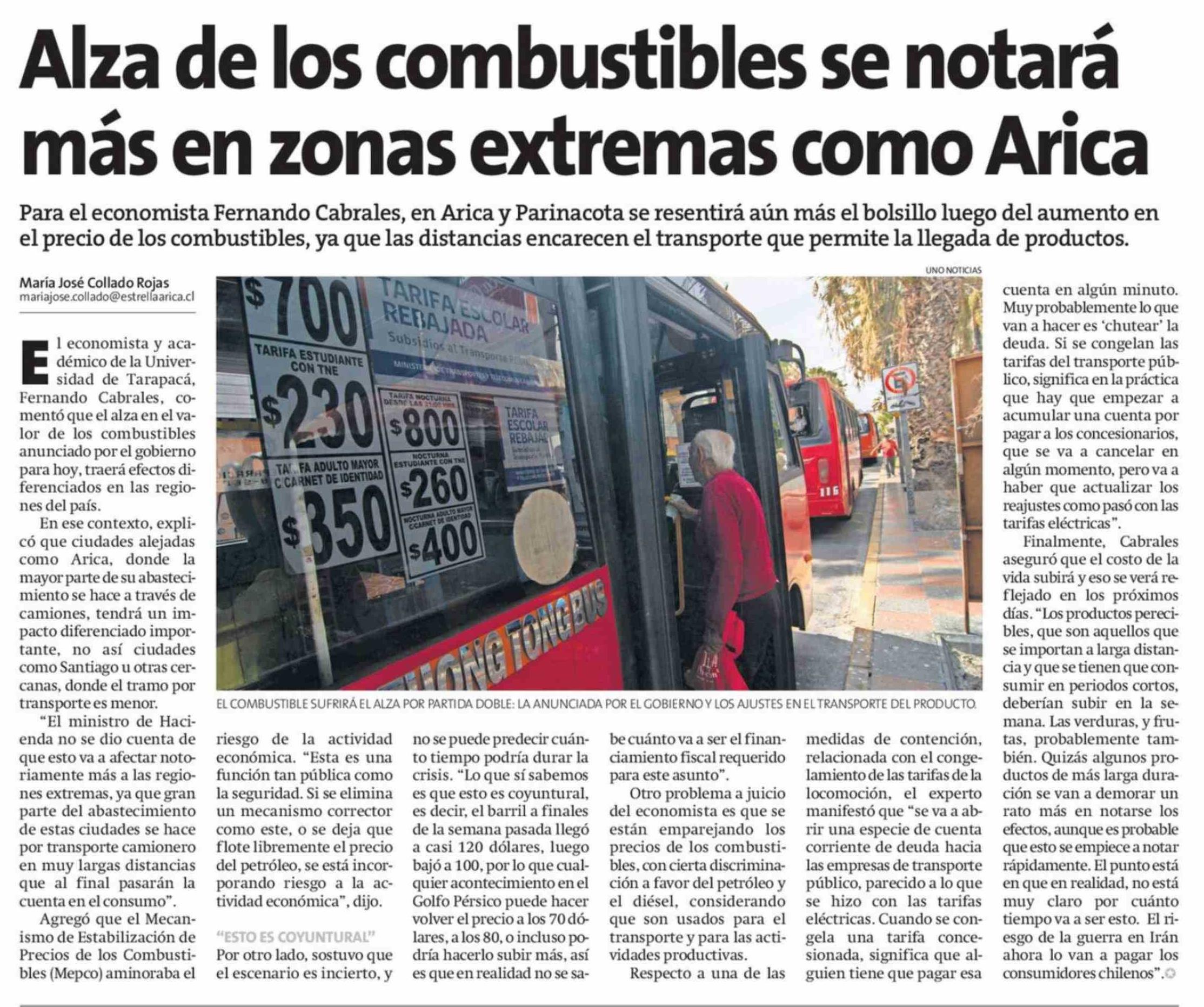 Alza de los combustibles se notará más en zonas extremas como Arica