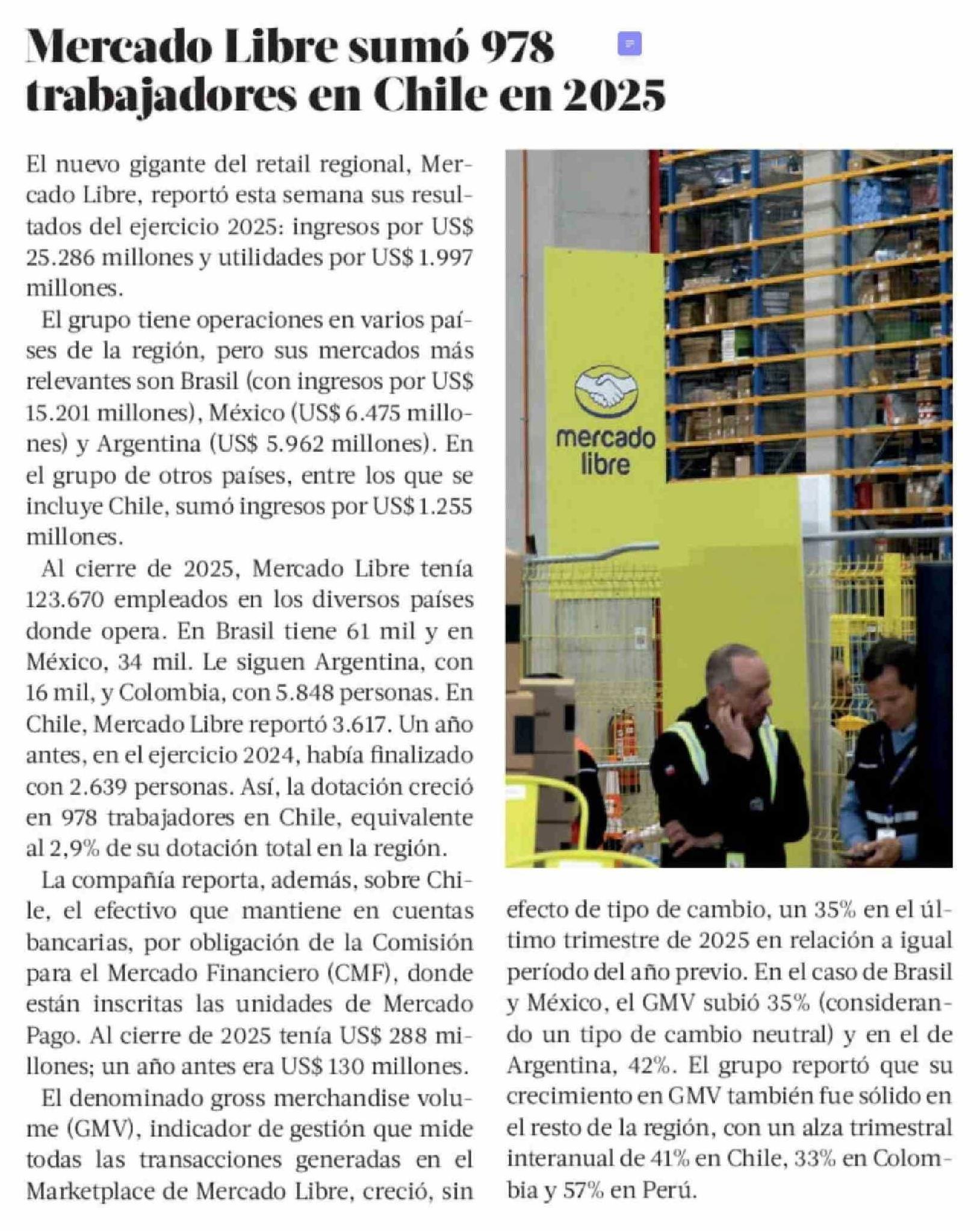 Mercado Libre sumó 978 trabajadores en Chile en 2025
