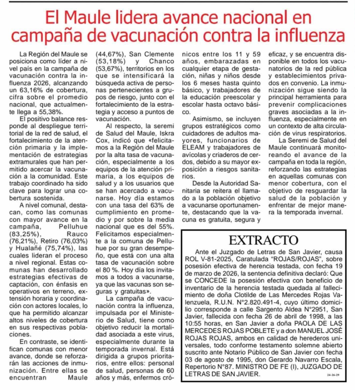 El Maule lidera avance nacional en campaña de vacunación contra la influenza