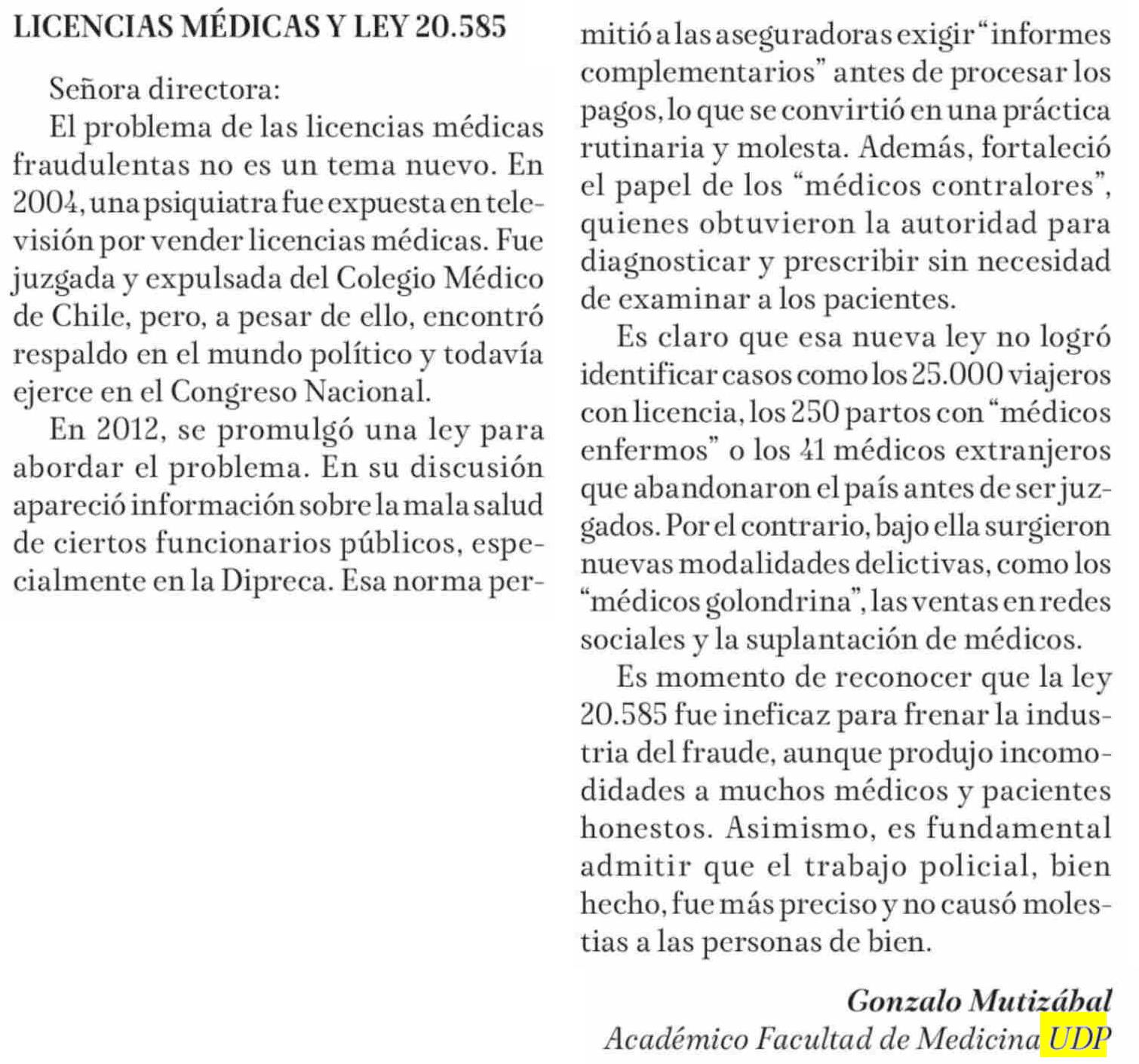 CARTAS: LICENCIAS MÉDICAS Y LEY 20.585
