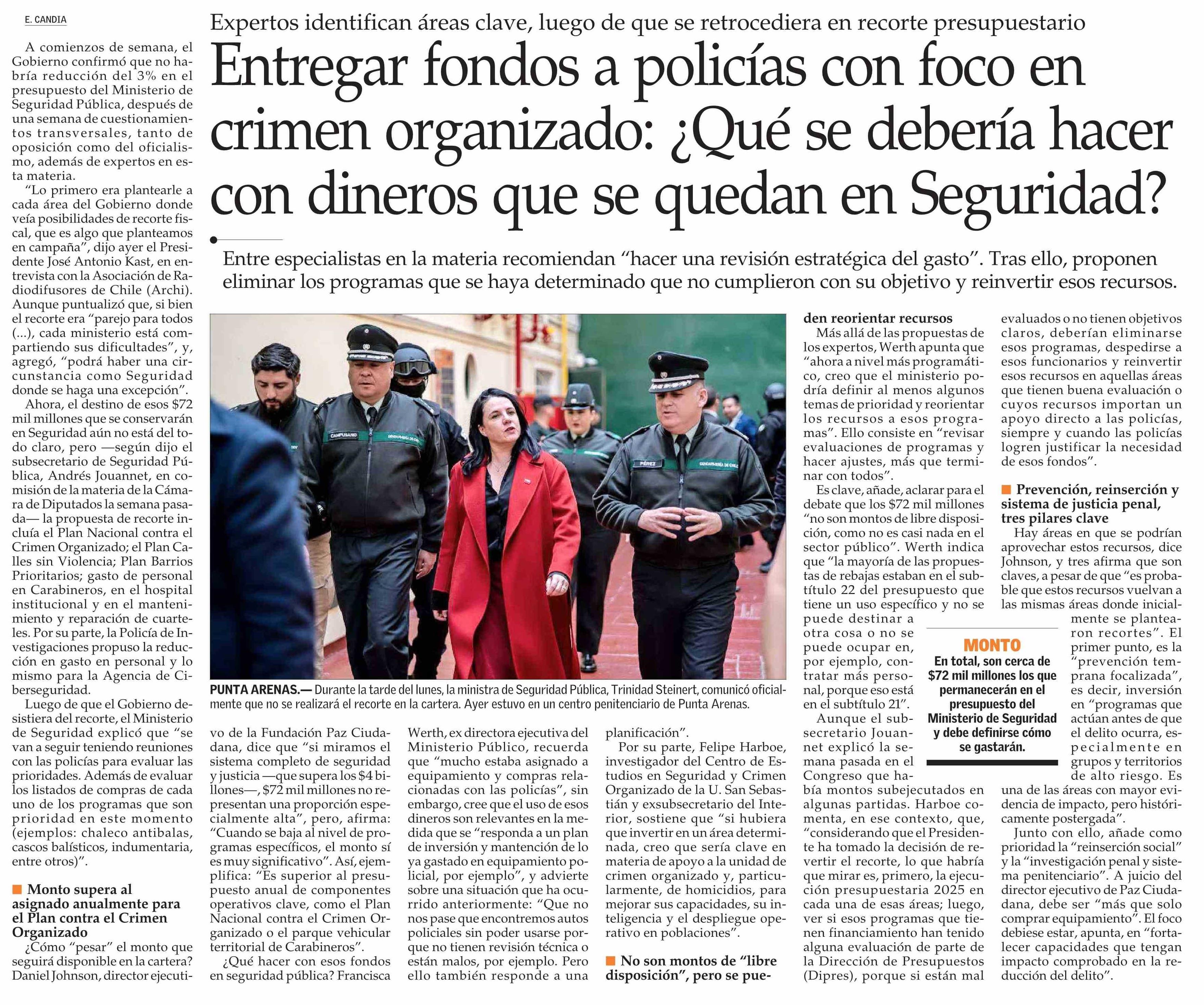 Entregar fondos a policías con foco en crimen organizado: ¿Qué se debería hacer con dineros que se quedan en Seguridad?