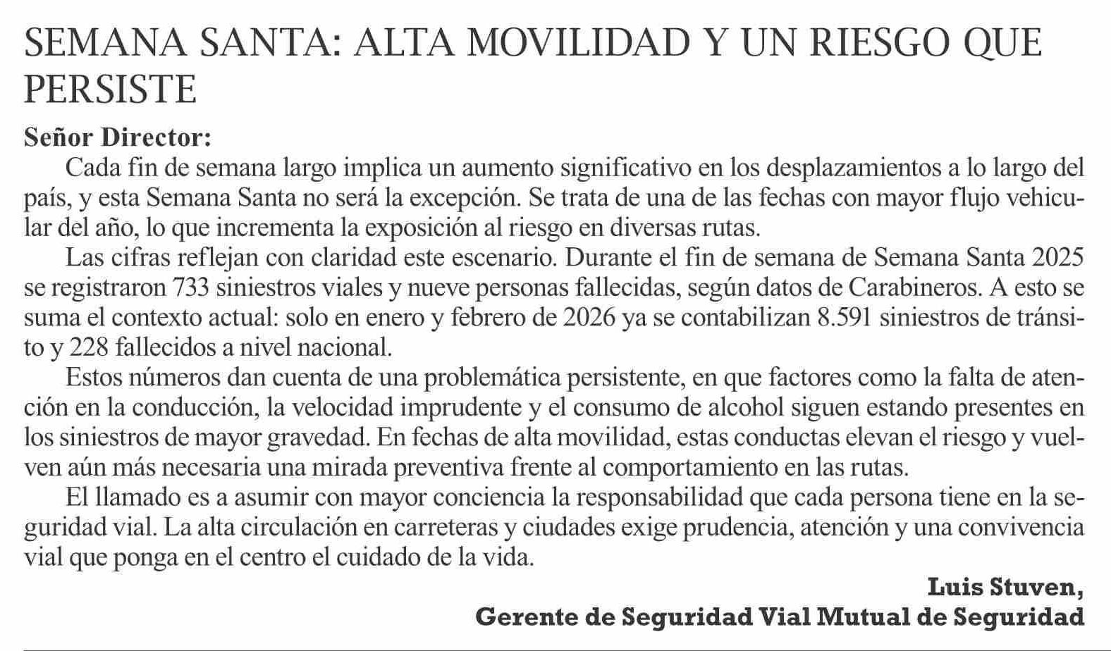 Cartas: SemAnA sAntA: AltA movilidAd y un riesgo que persiste