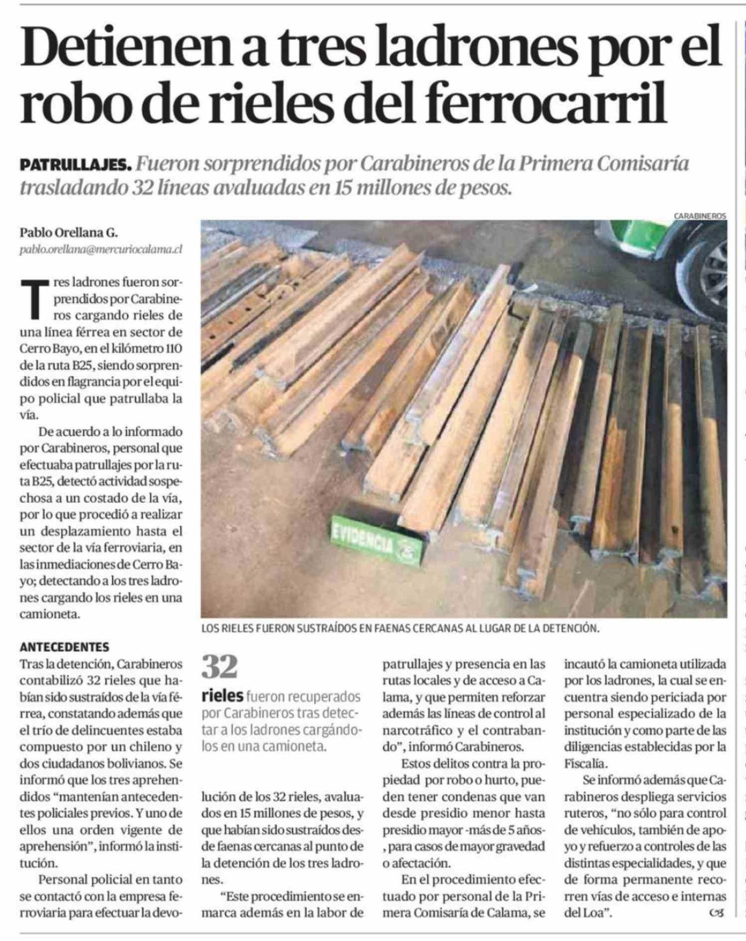 Detienen a tres ladrones por el robo de rieles del ferrocarril
