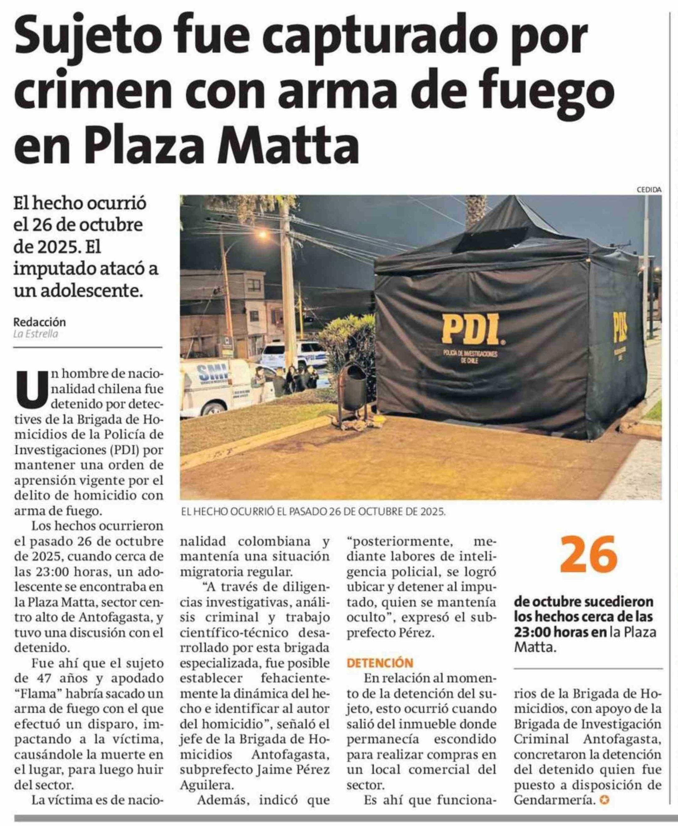 Sujeto fue capturado por crimen con arma de fuego en Plaza Matta