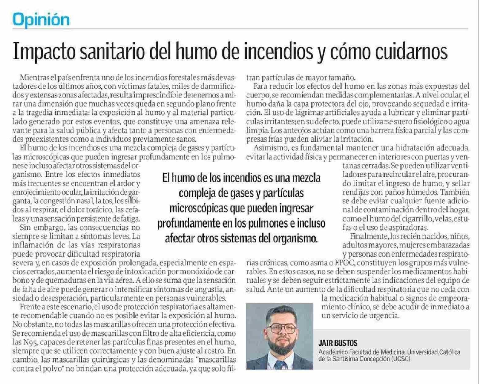 Título: Columnas de Opinión: Impacto sanitario del humo de incendios y cómo cuidarnos