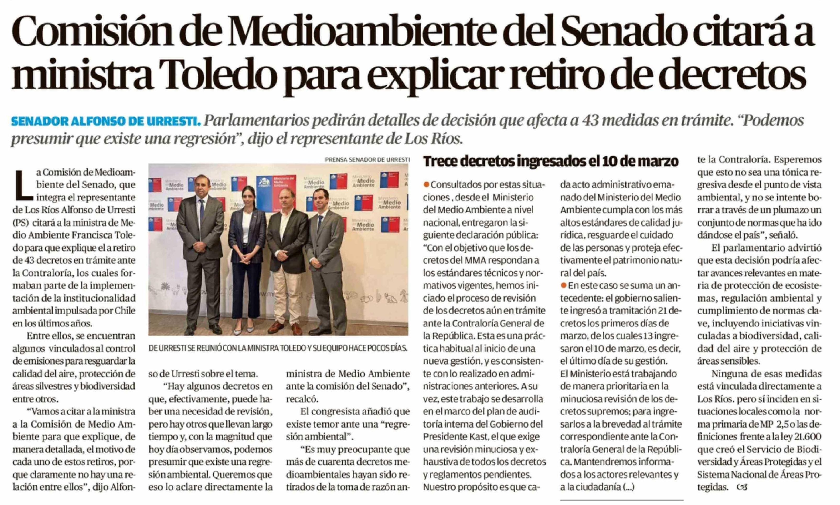 Comisión de Medioambiente del Senado citará a ministra Toledo para explicar retiro de decretos