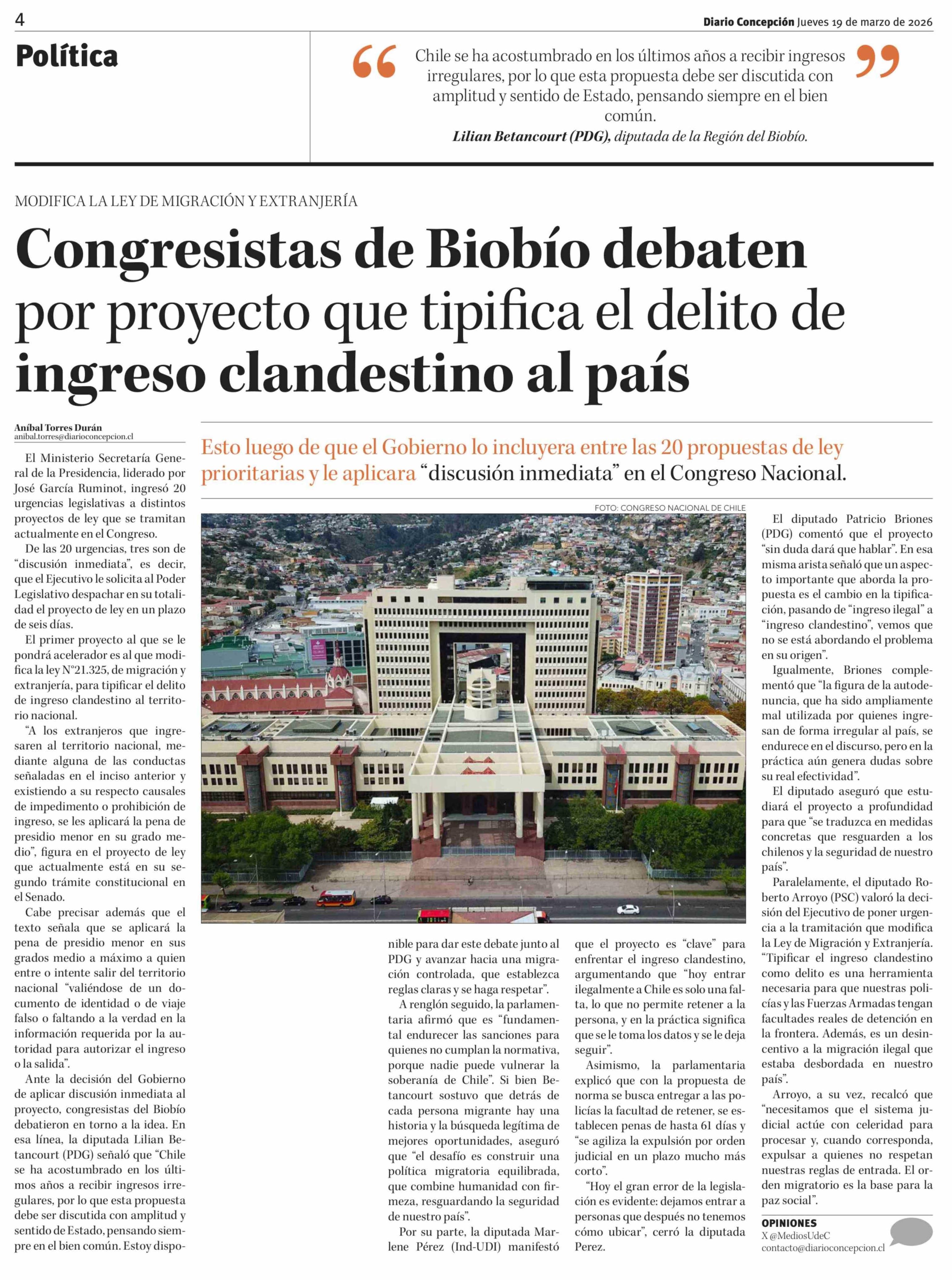Congresistas de Biobío debaten por proyecto que tipifica el delito de ingreso clandestino al país