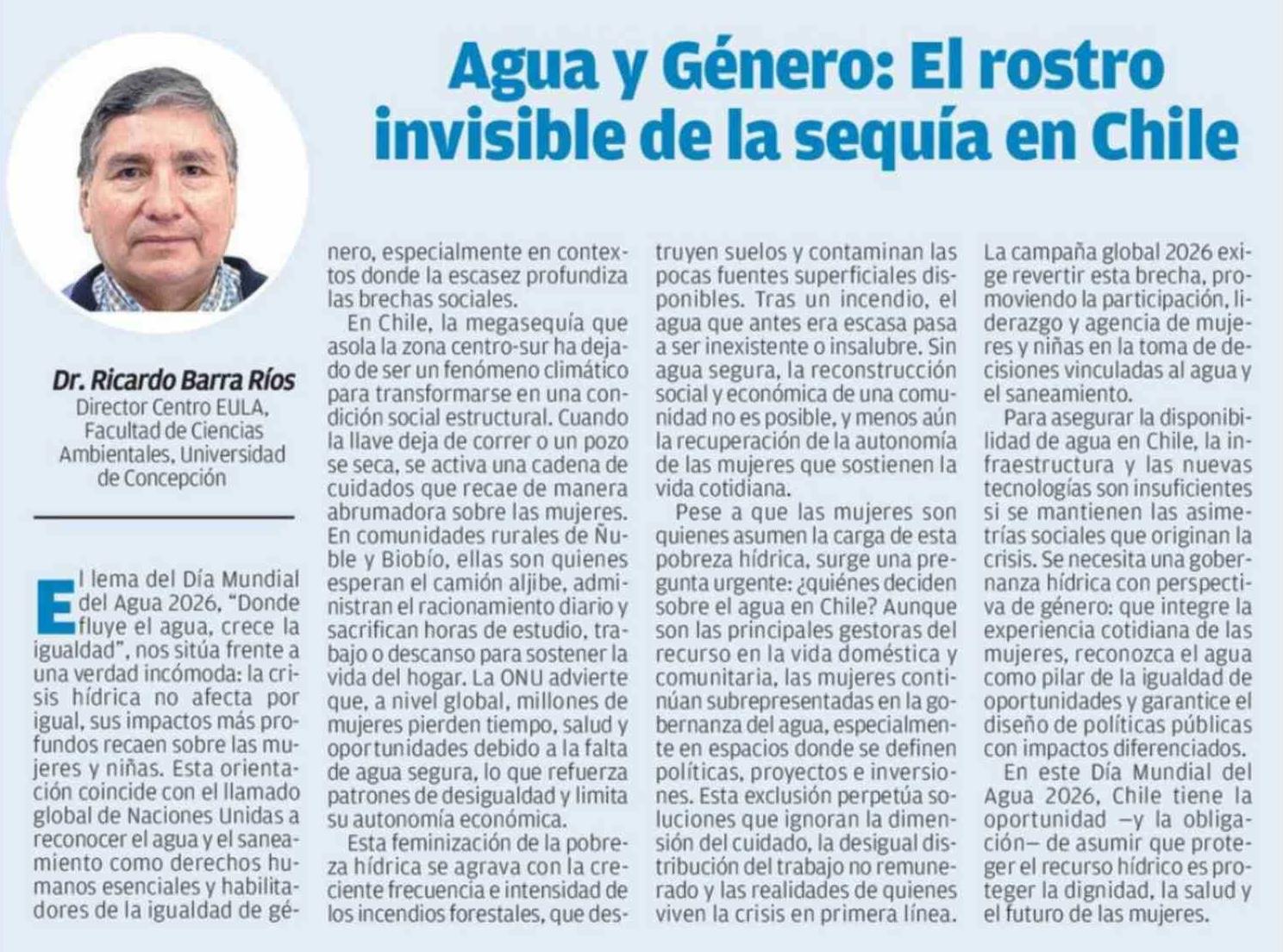 Columnas de Opinión: Agua y Género: El rostro invisible de la sequía en Chile