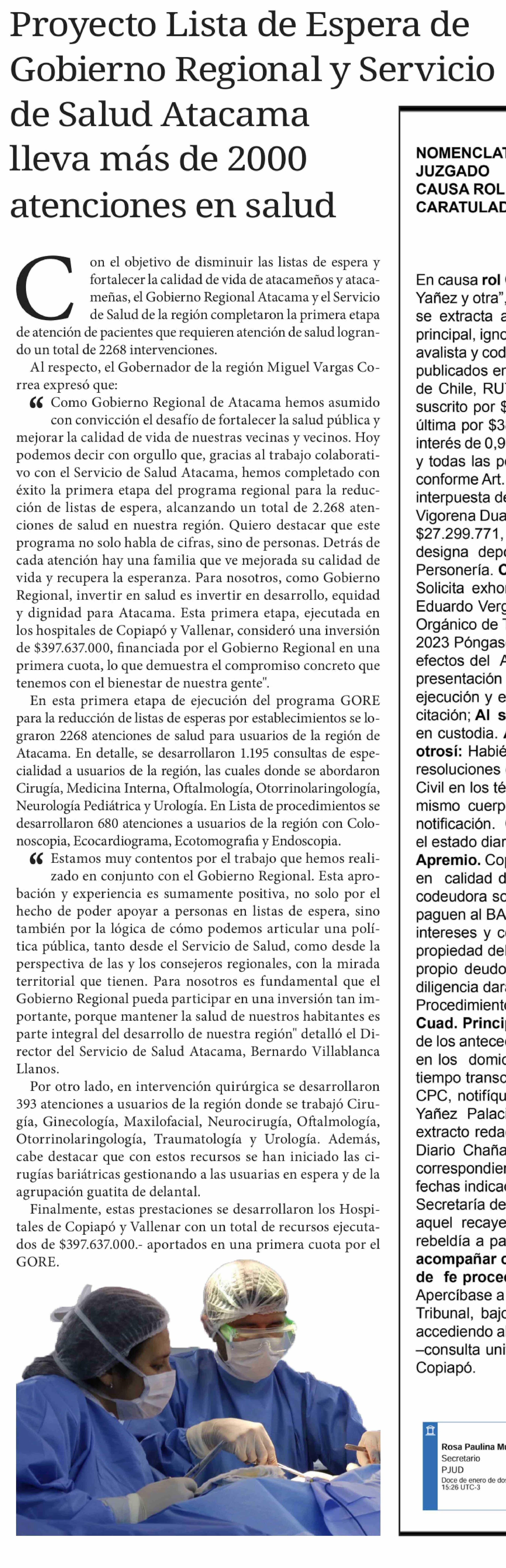 Proyecto Lista de Espera de Gobierno Regional y Servicio de Salud Atacama lleva más de 2000 atenciones en salud