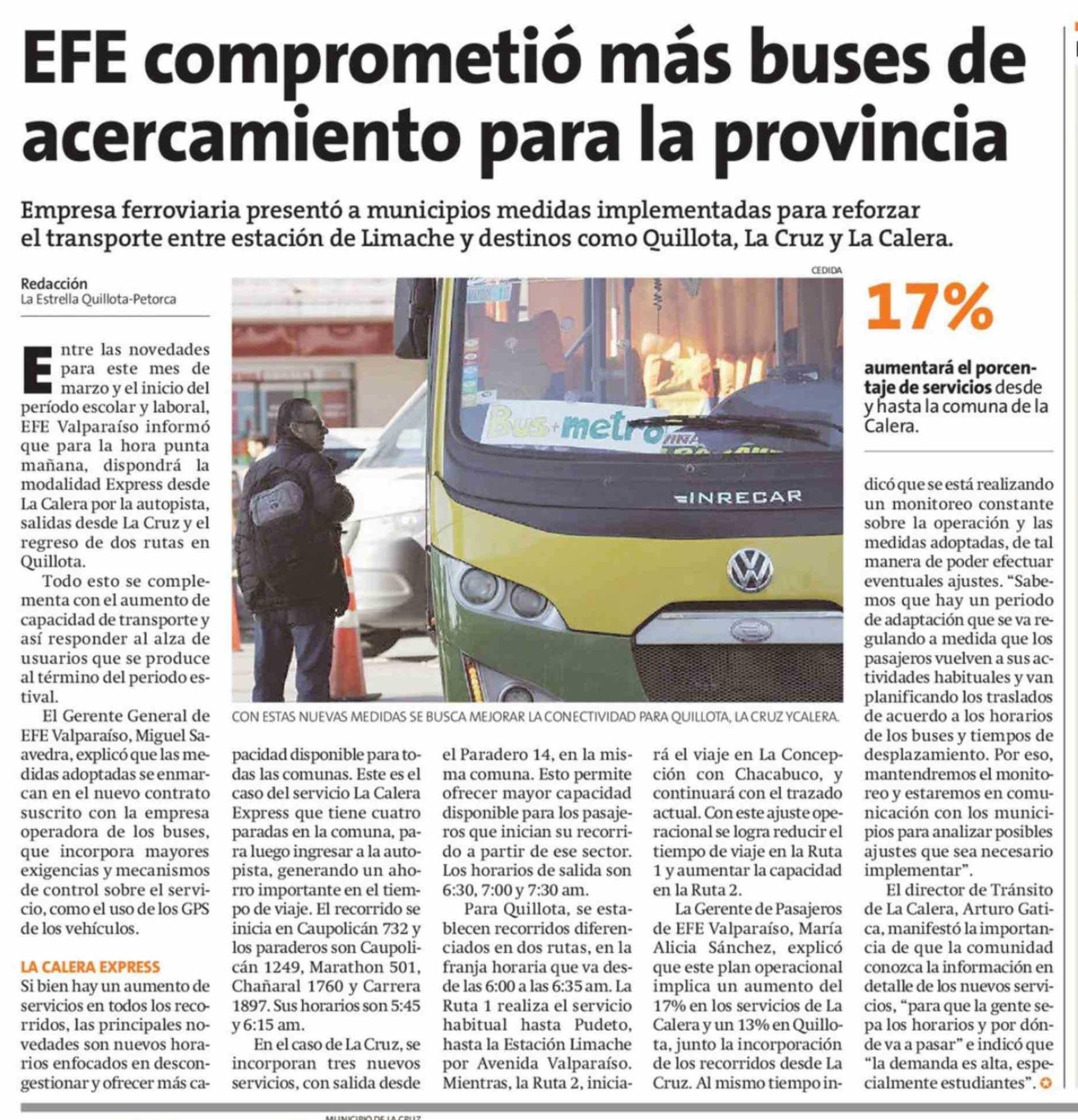 EFE comprometió más buses de acercamiento para la provincia