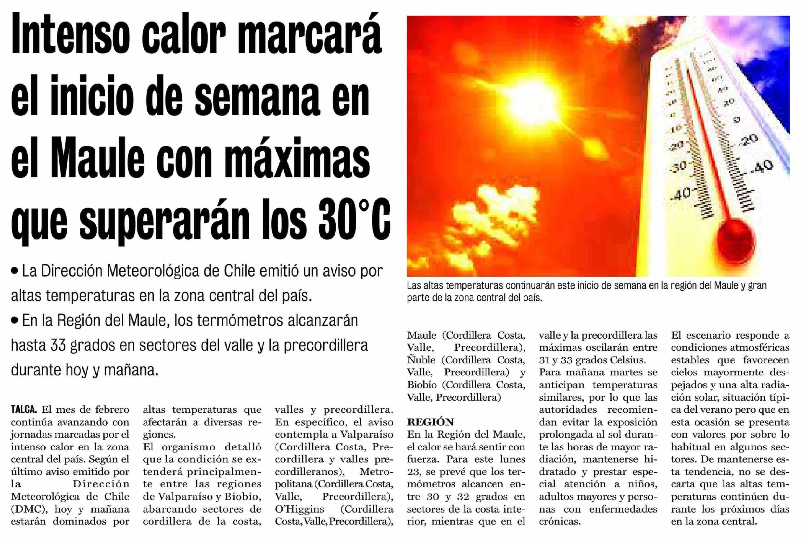 Intenso calor marcará el inicio de semana en el Maule con máximas que superarán los 30?