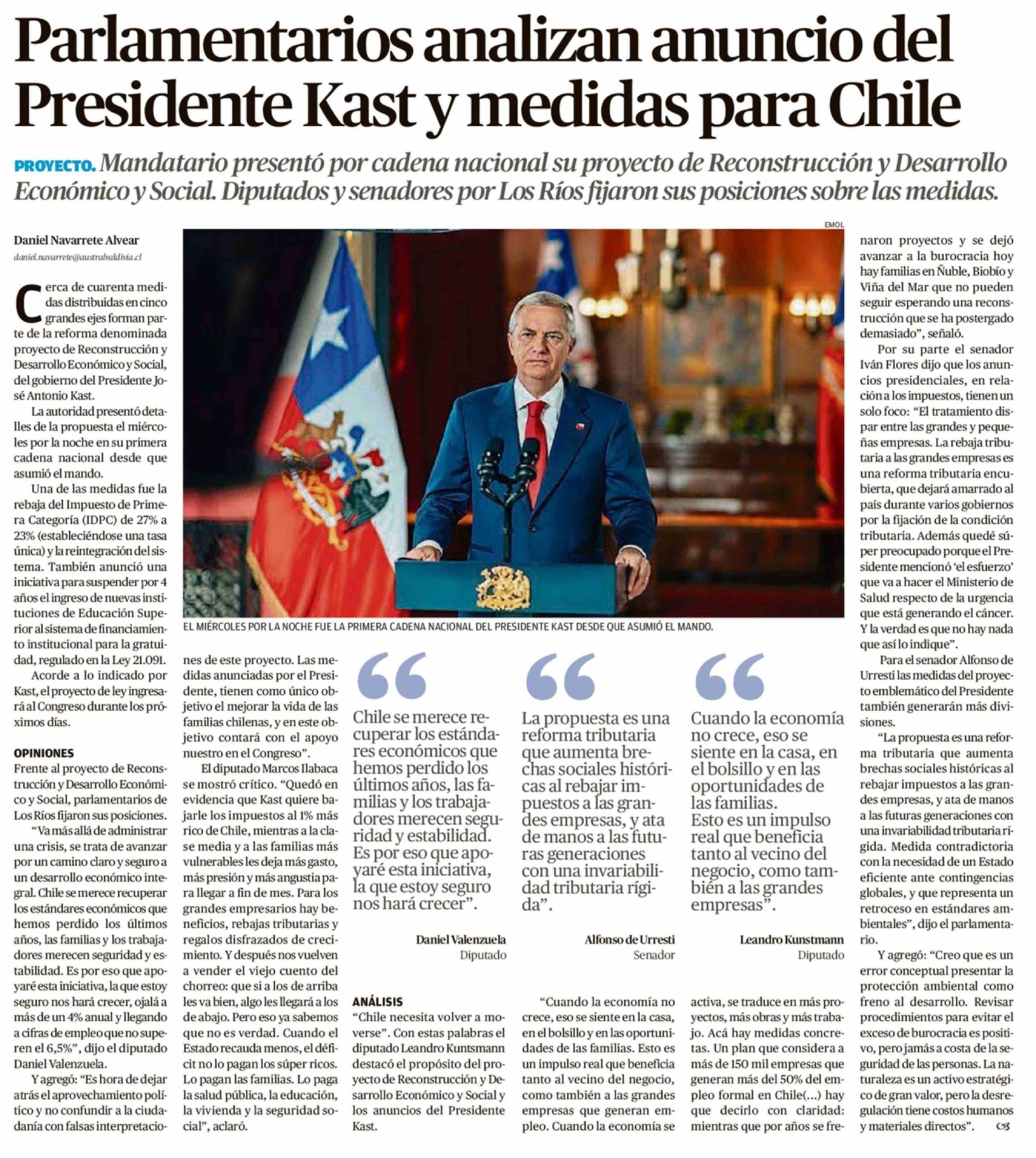 Parlamentarios analizan anuncio del Presidente Kast y medidas para Chile