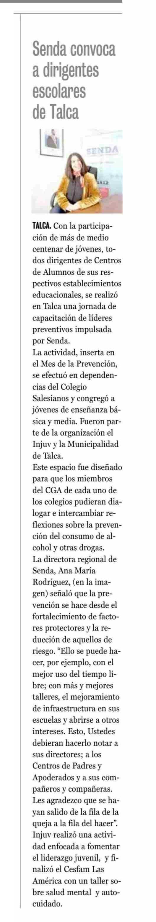 Senda convoca a dirigentes escolares de Talca