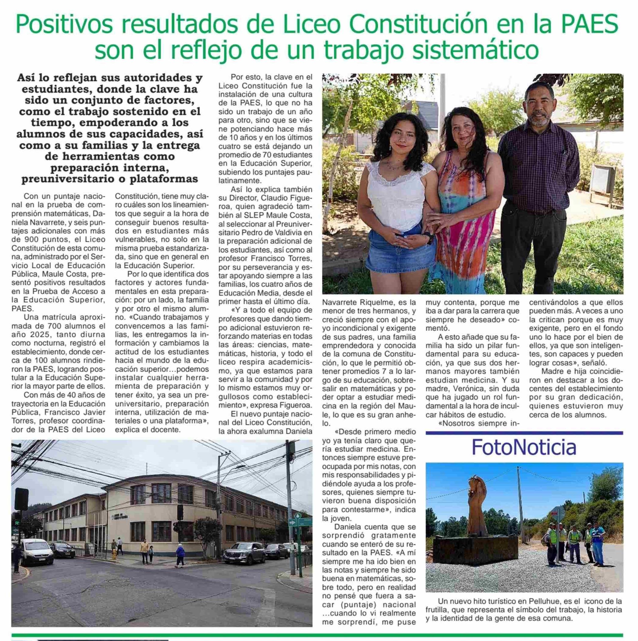 Positivos resultados de Liceo Constitución en la PAES son el reflejo de un trabajo sistemático