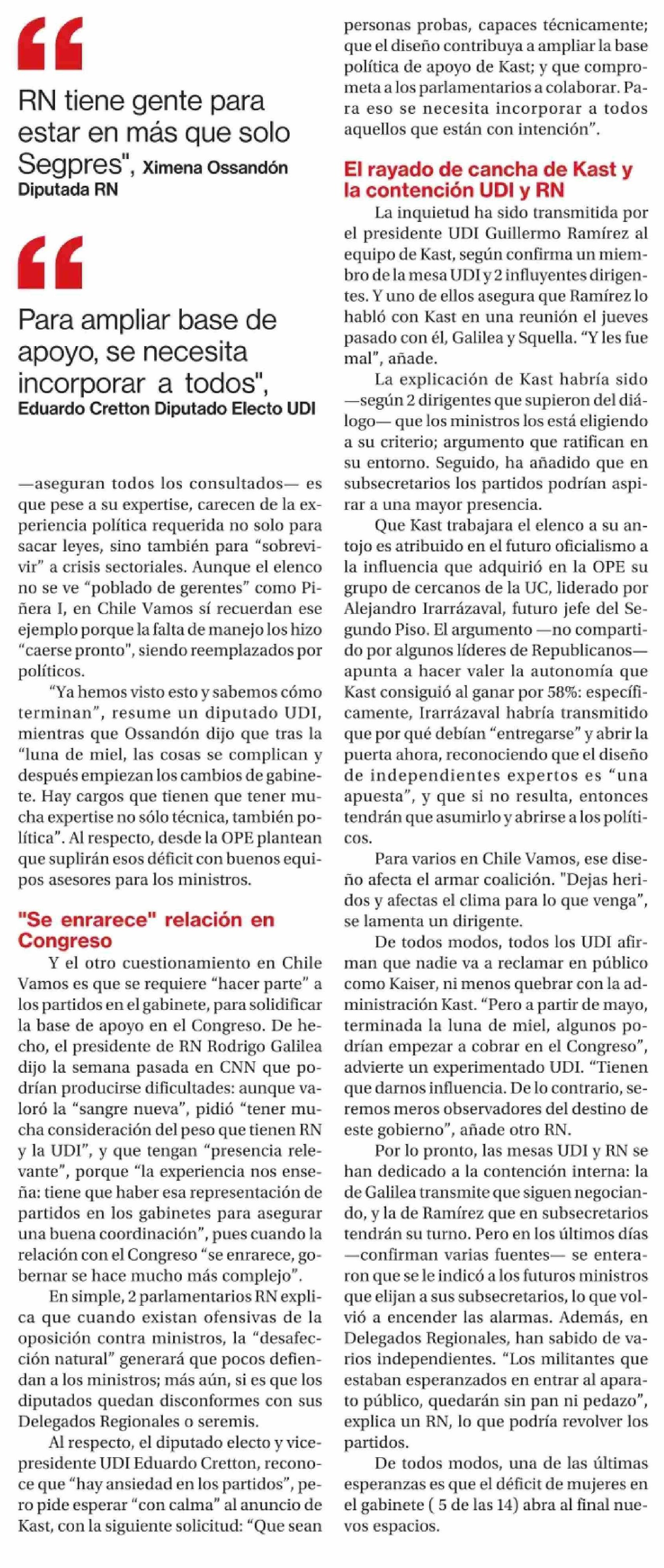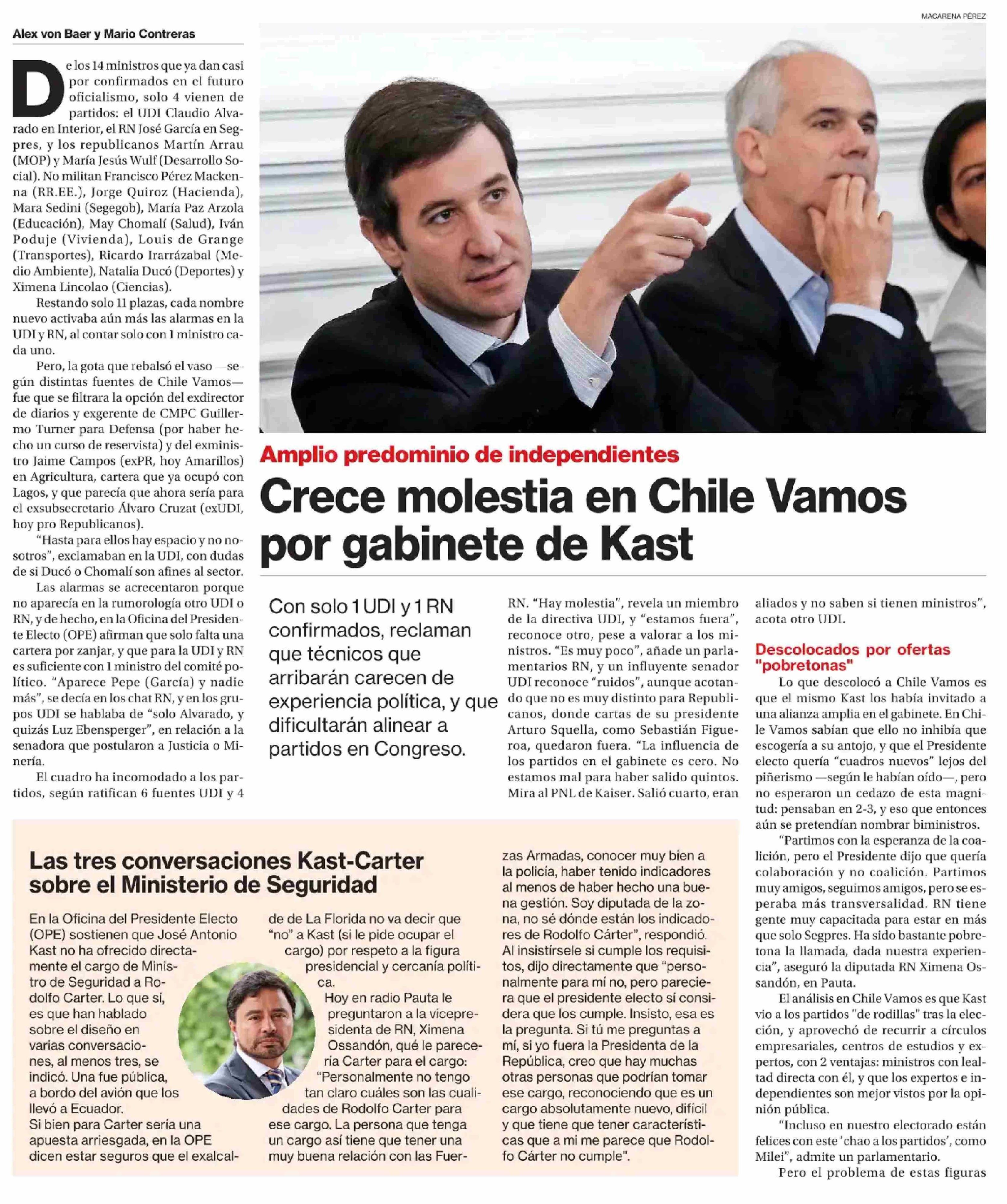 Crece molestia en Chile Vamos por gabinete de Kast