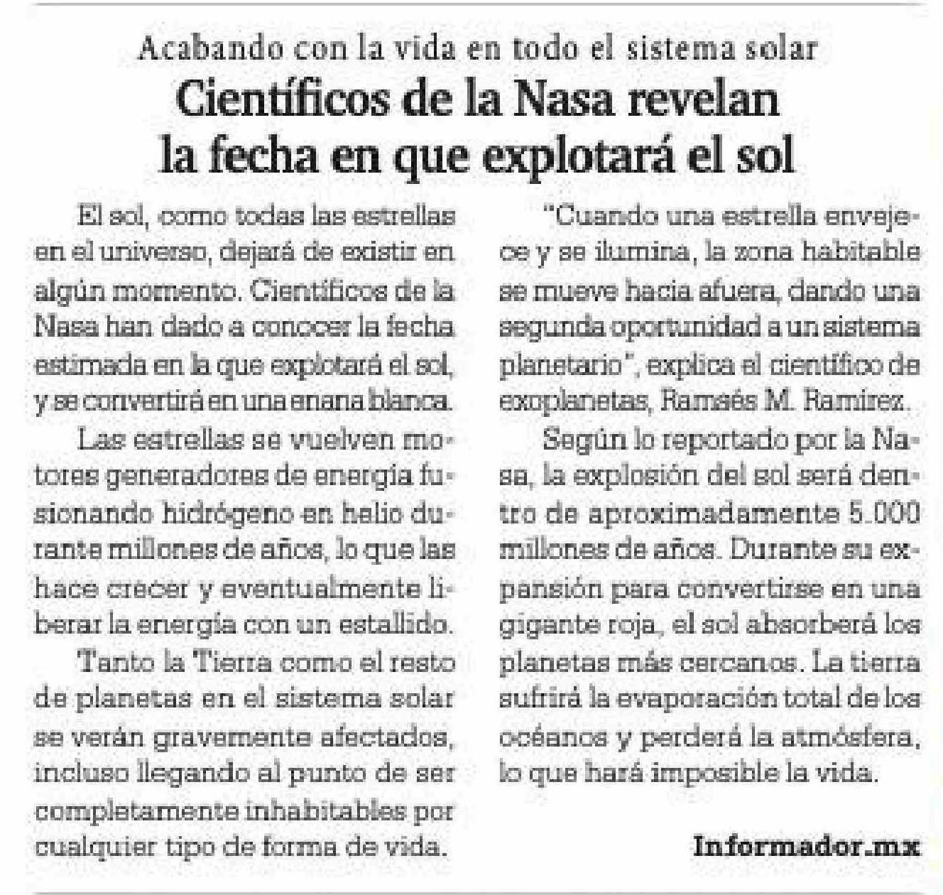 Científicos de la Nasa revelan la fecha en que explotará el sol