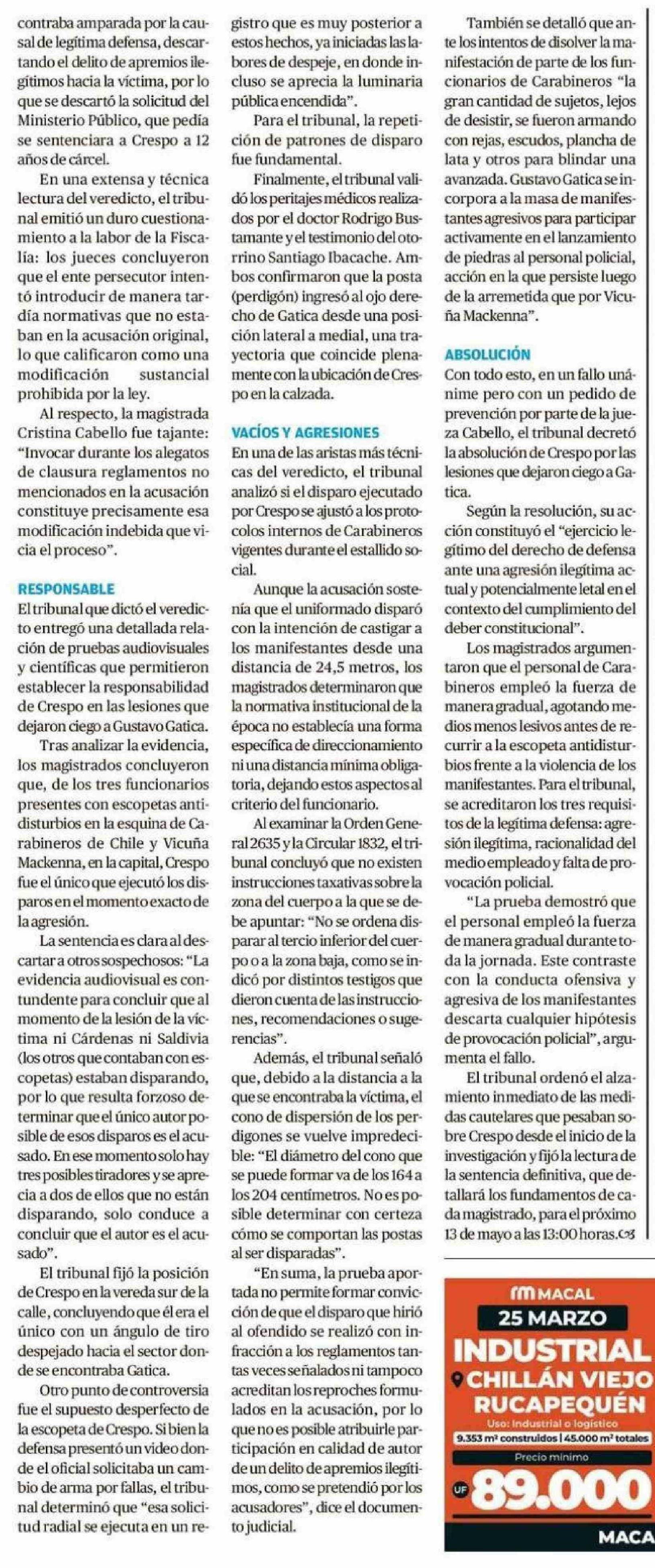 Excarabinero Claudio Crespo fue absuelto en caso de Gustavo Gatica