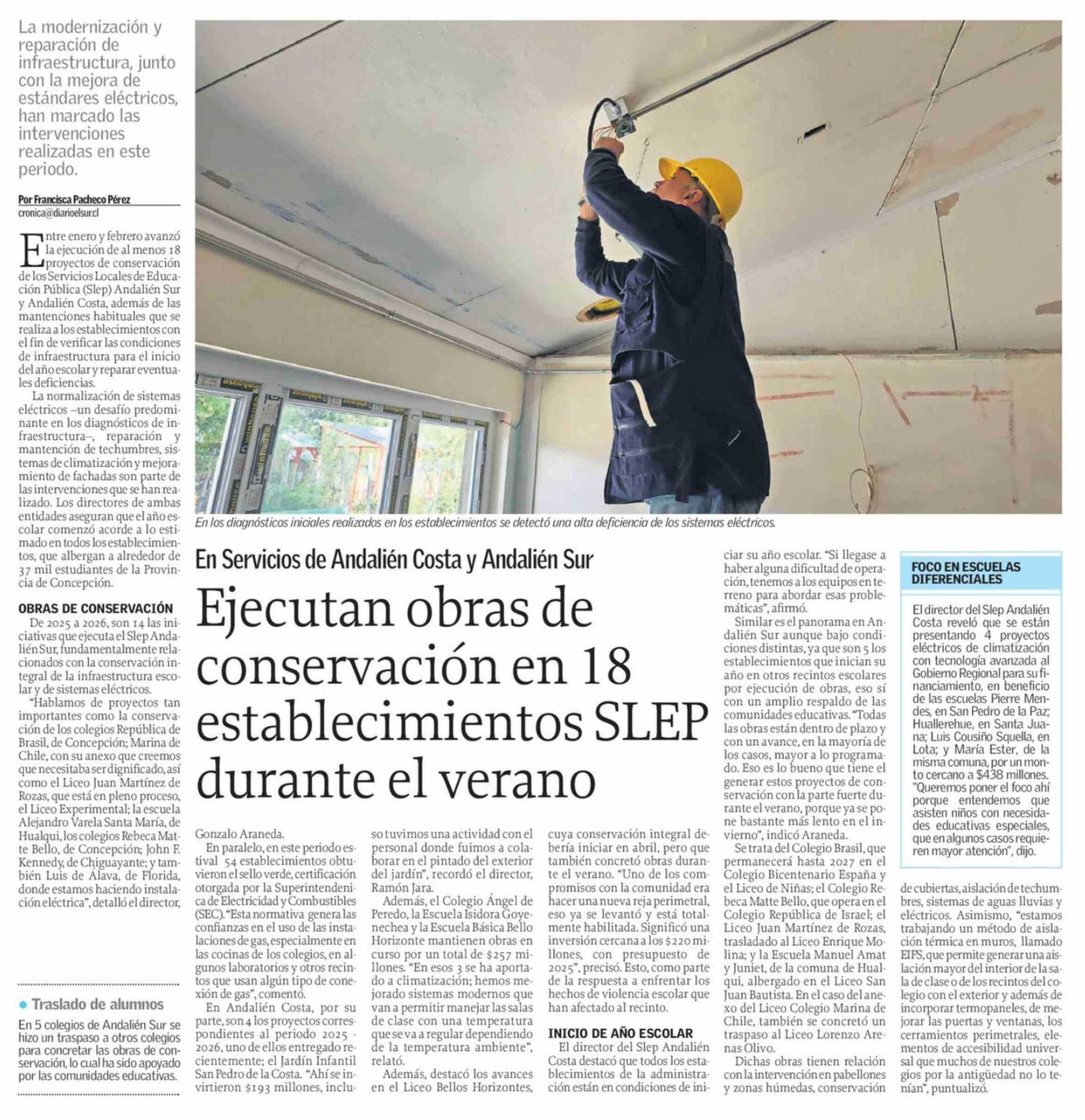 Ejecutan obras de conservación en 18 establecimientos SLEP durante el verano