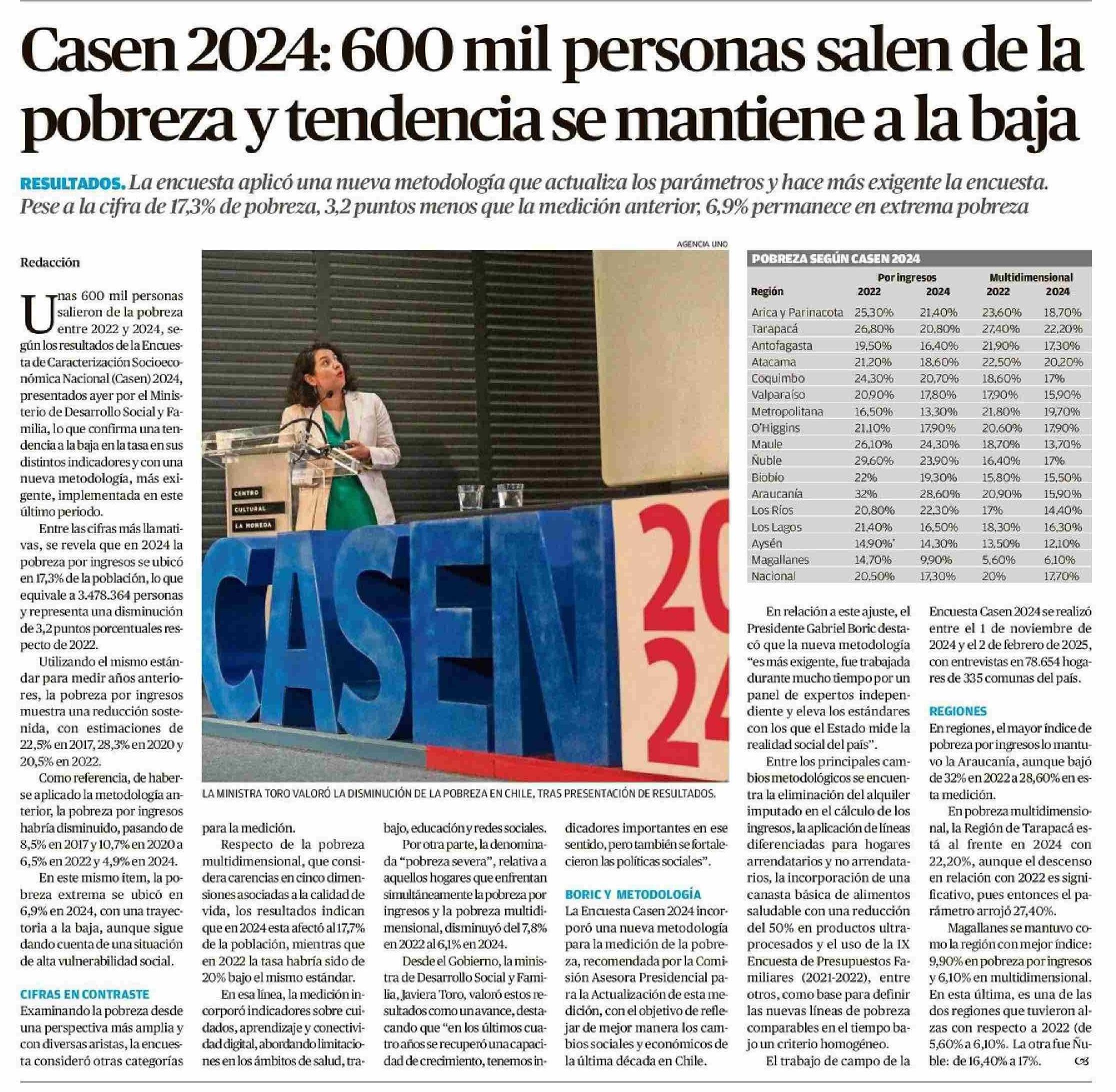 Casen 2024: 600 mil personas salen de la pobreza y tendencia se mantiene a la baja