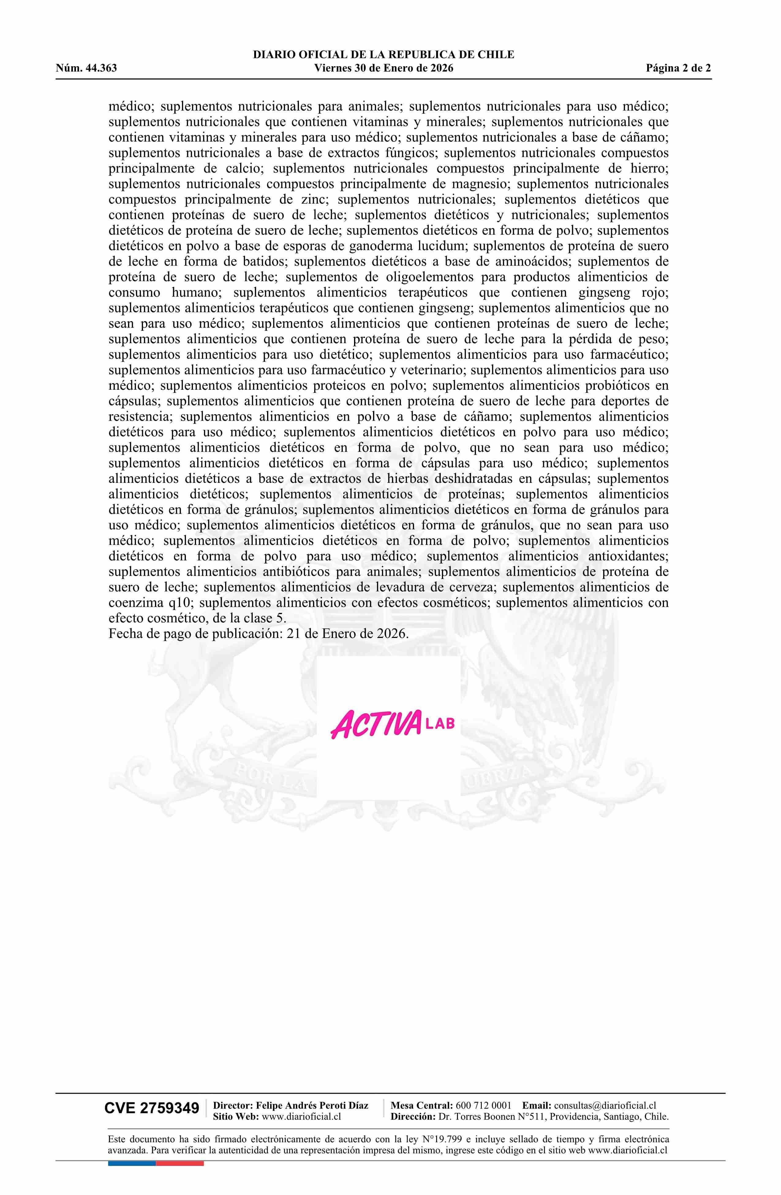 Diario Oficial Edición Electrónica (Diario Oficial de Chile - 6 Marcas Y Patentes)