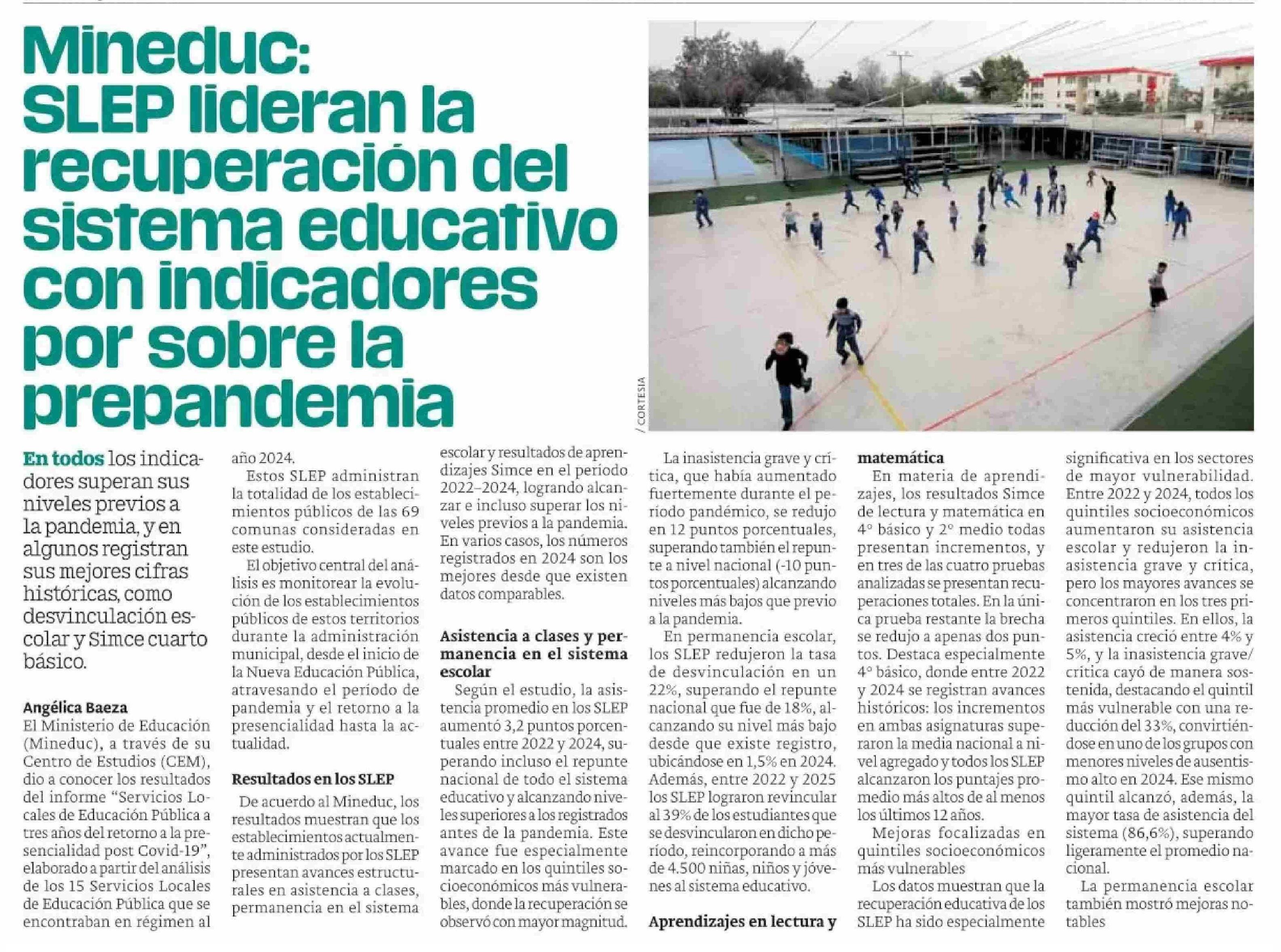 Mineduc: SLEP lideran la recuperación del sistema educativo con indicadores por sobre la prepandemia