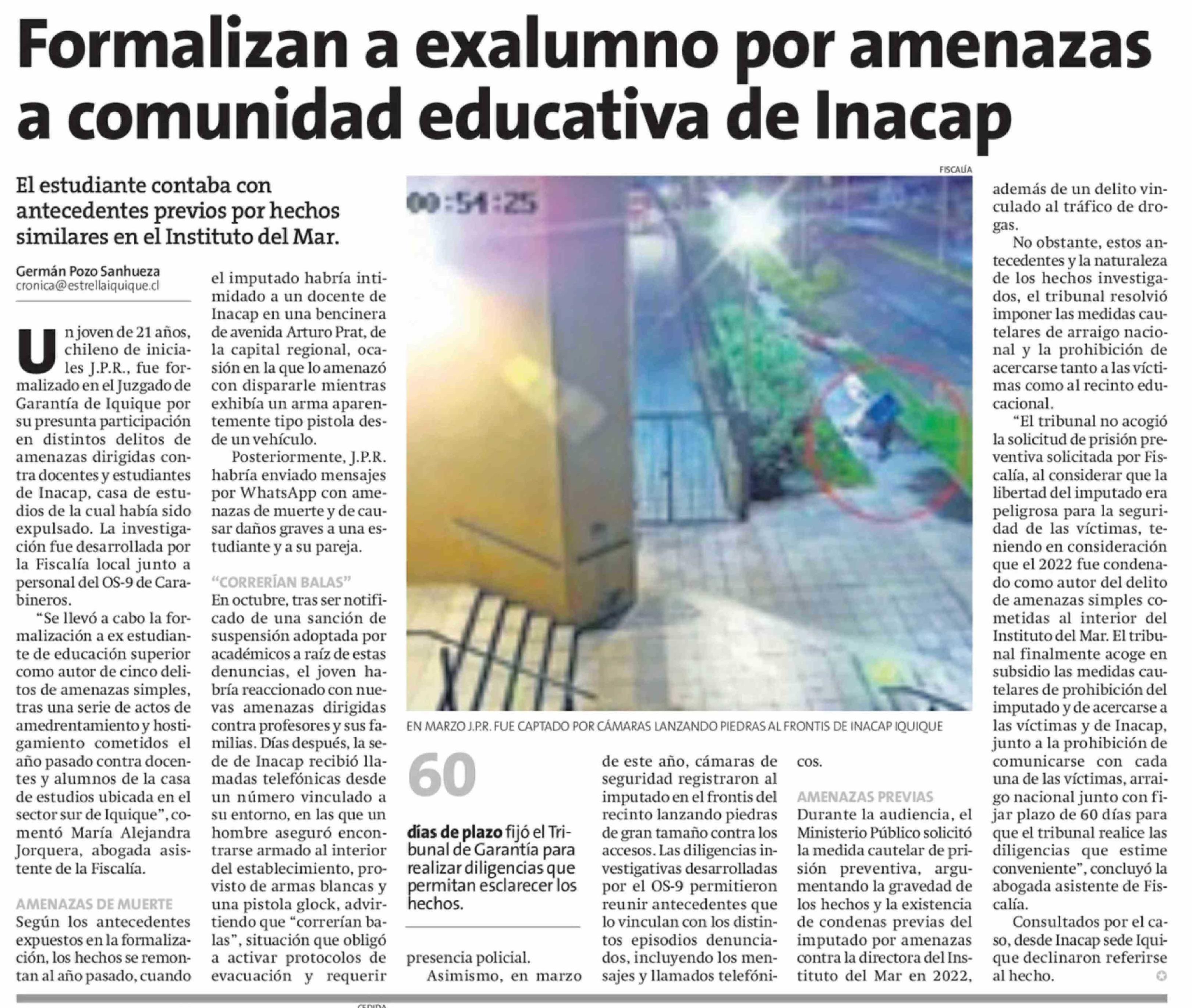 Título: Formalizan a exalumno por amenazas a comunidad educativa de Inacap