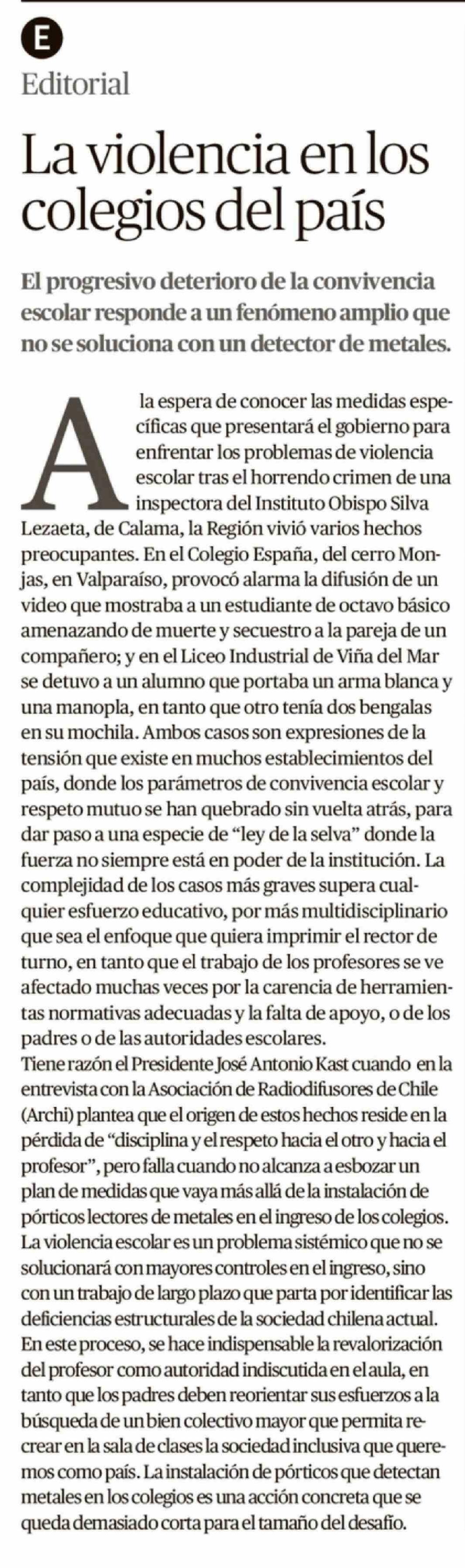 Editorial: La violencia en los colegios del país