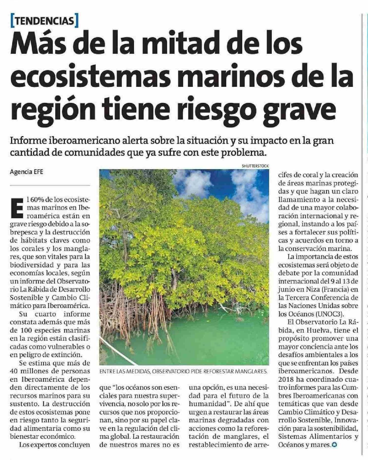 Más de la mitad de los región tiene riesgo grave ecosistemas marinos de la